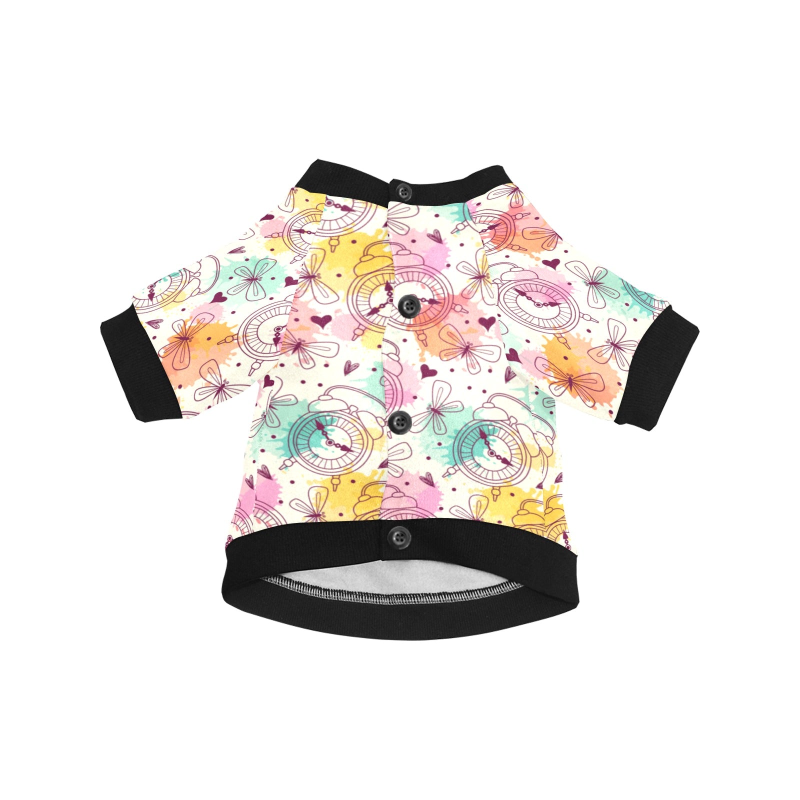 Clock butterfly pattern All Over Print Pet Dog Round Neck Fuzzy Shirt