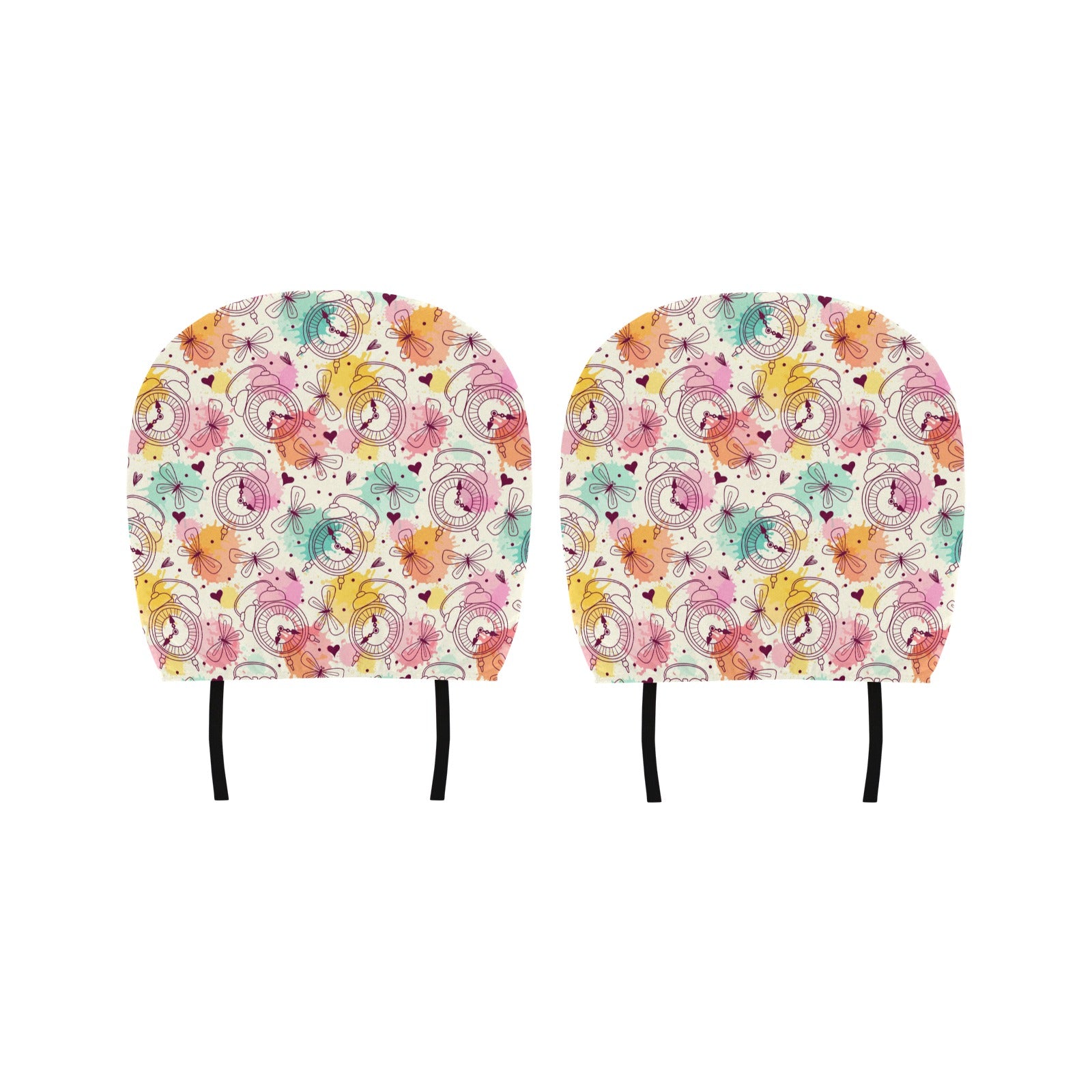 Clock butterfly pattern Car Headrest Cover