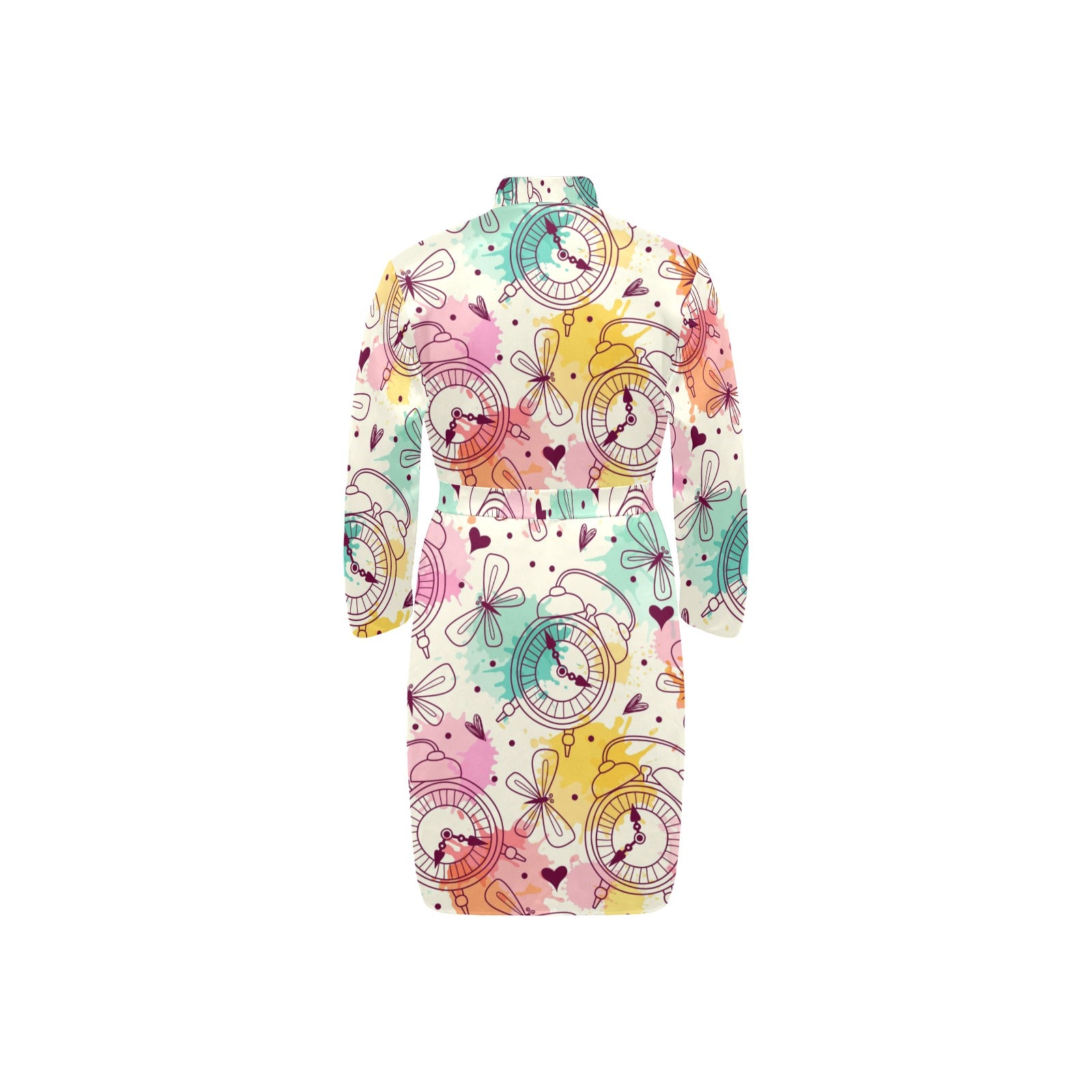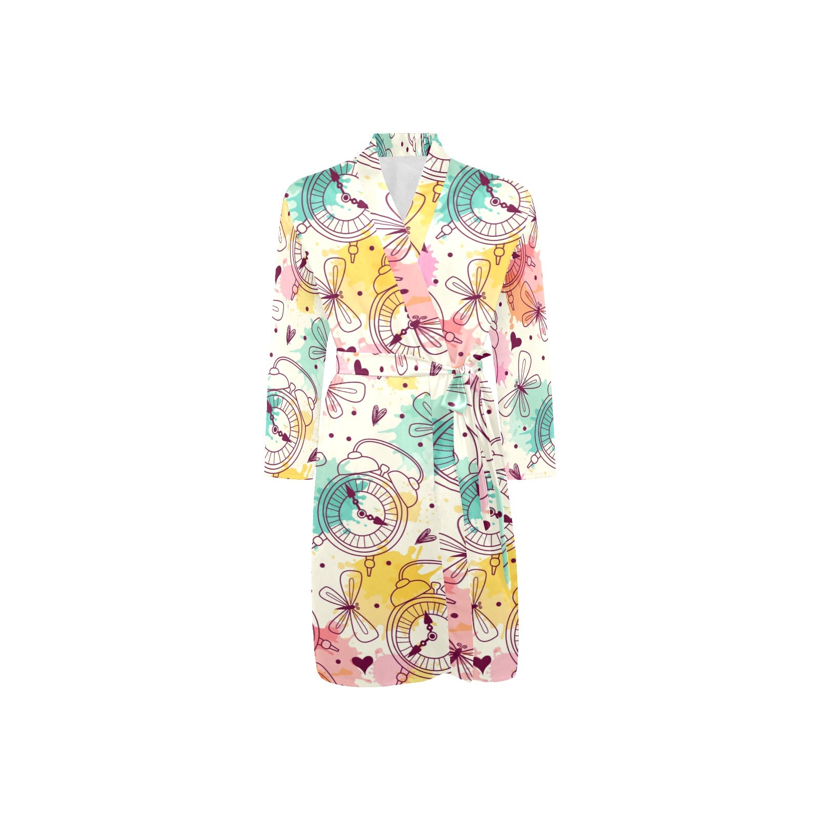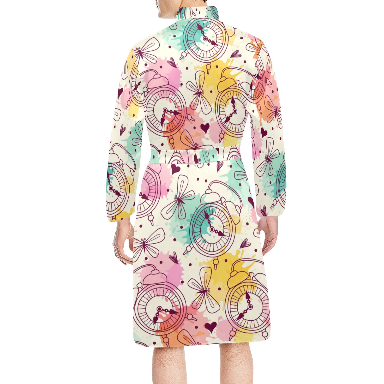 Clock butterfly pattern Men's Long Sleeve Belted Night Robe