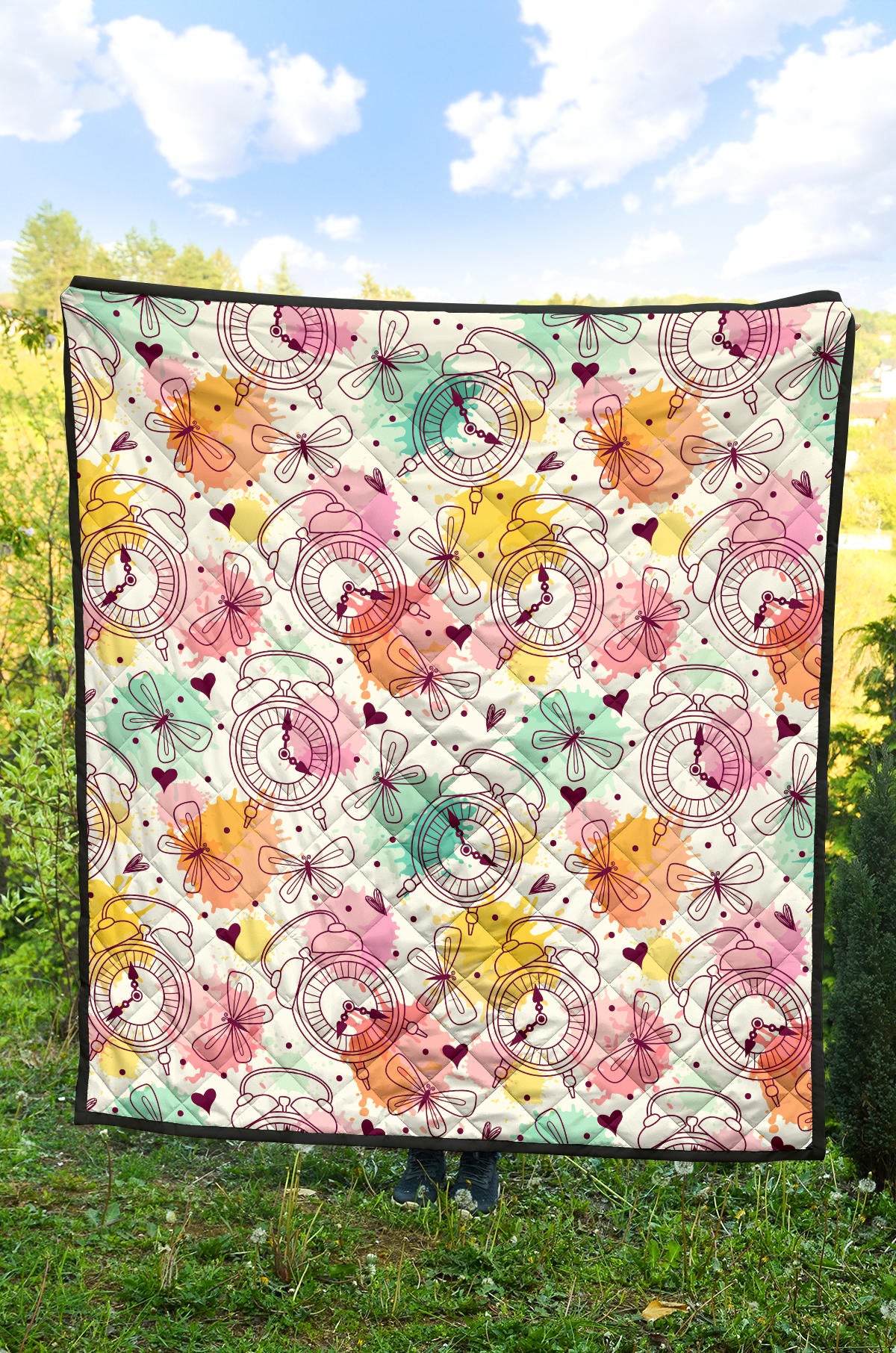 Clock Butterfly Pattern Premium Quilt is a uniqued design and limited item. It made to order, hand printed, and sewn with love in our factory.