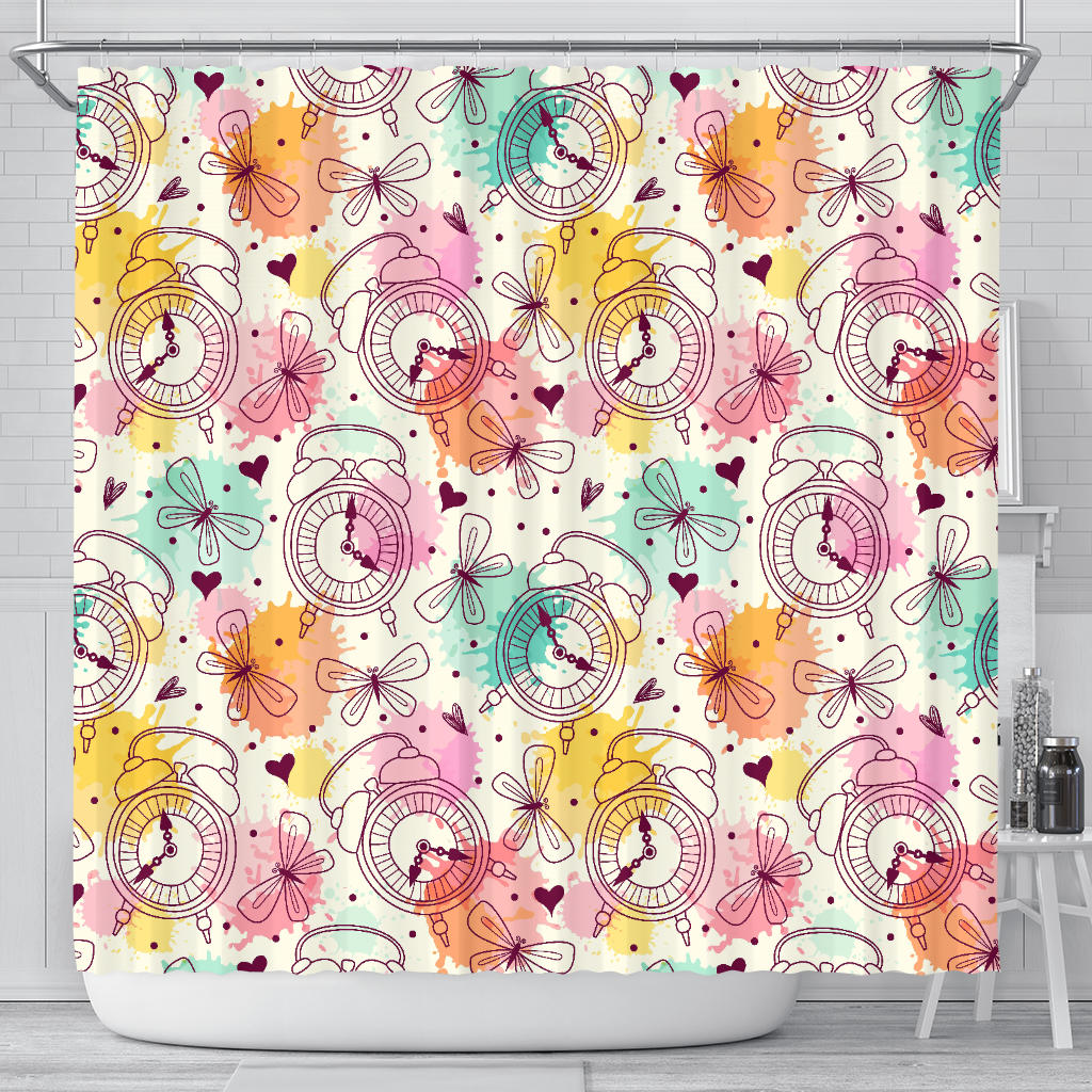 Clock Butterfly Pattern Shower Curtain Fulfilled In US