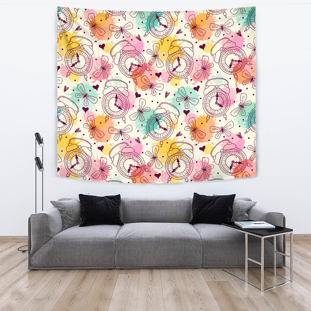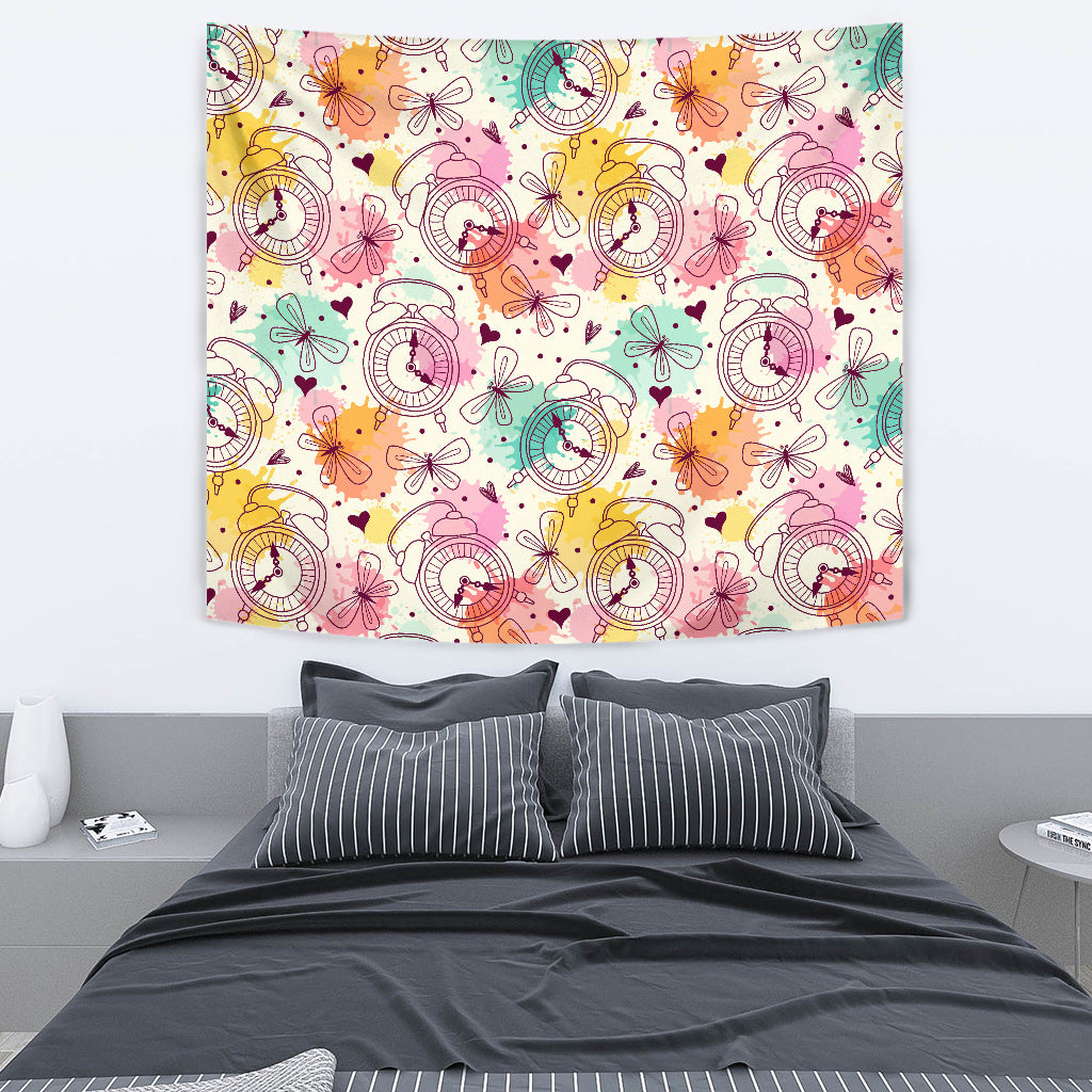 Clock butterfly pattern Tapestry is a uniqued design and limited item. It made to order, hand printed, and sewn with love in our factory.