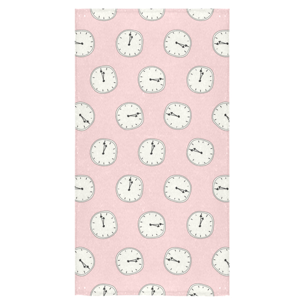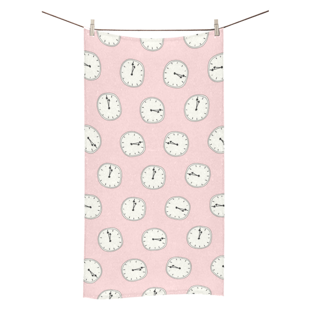 Clock pattern pink blackground Bath Towel 30"x56" is a uniqued design and limited item. It made to order, hand printed, and sewn with love in our factory.