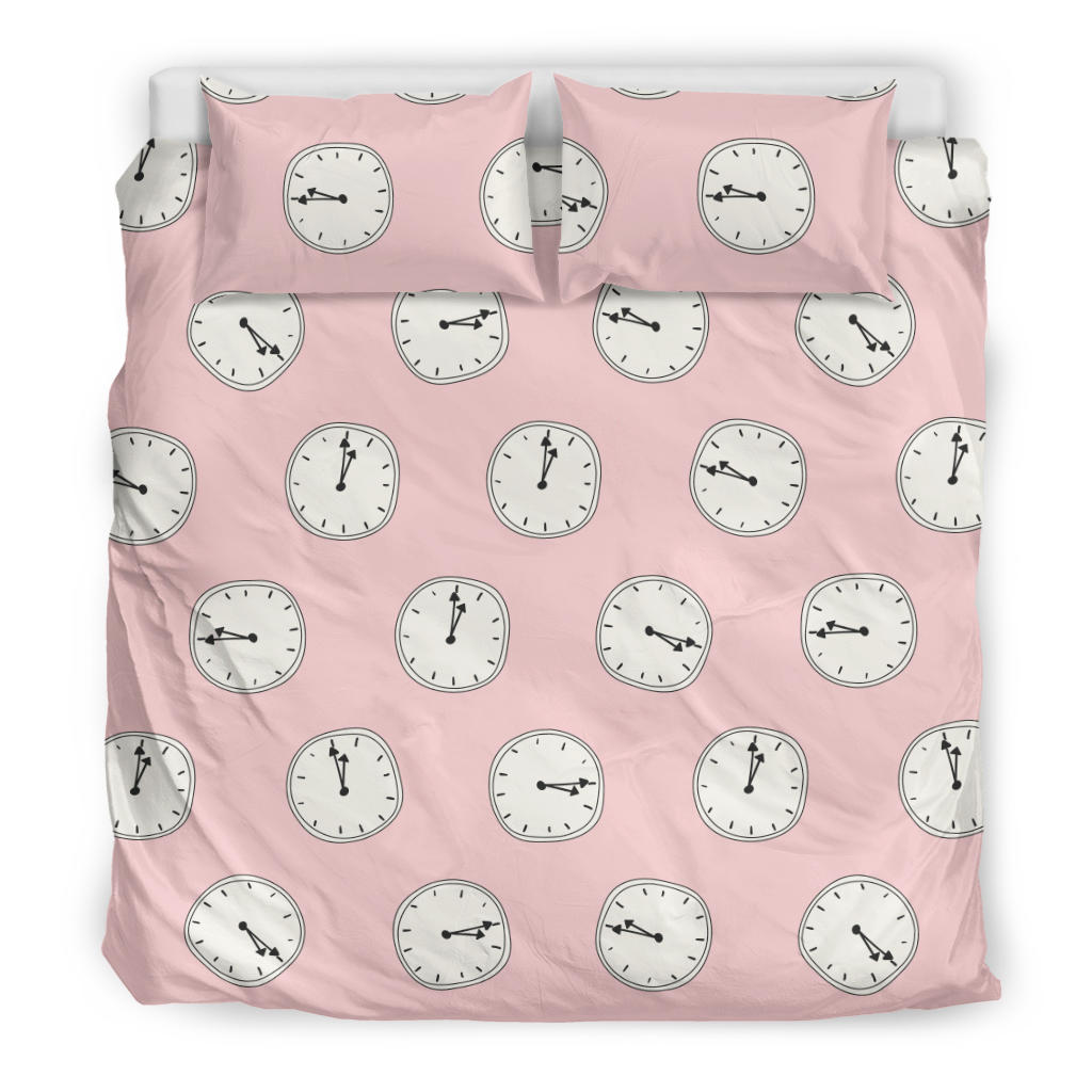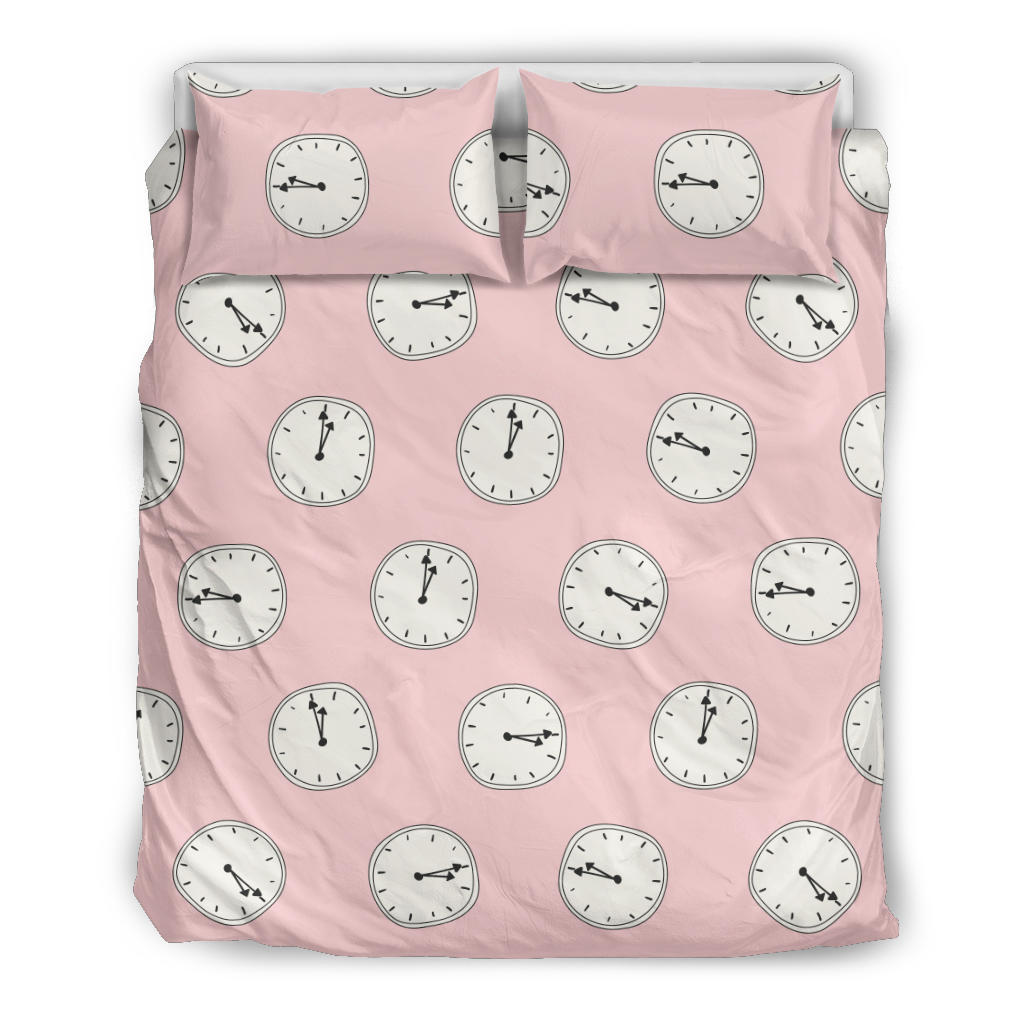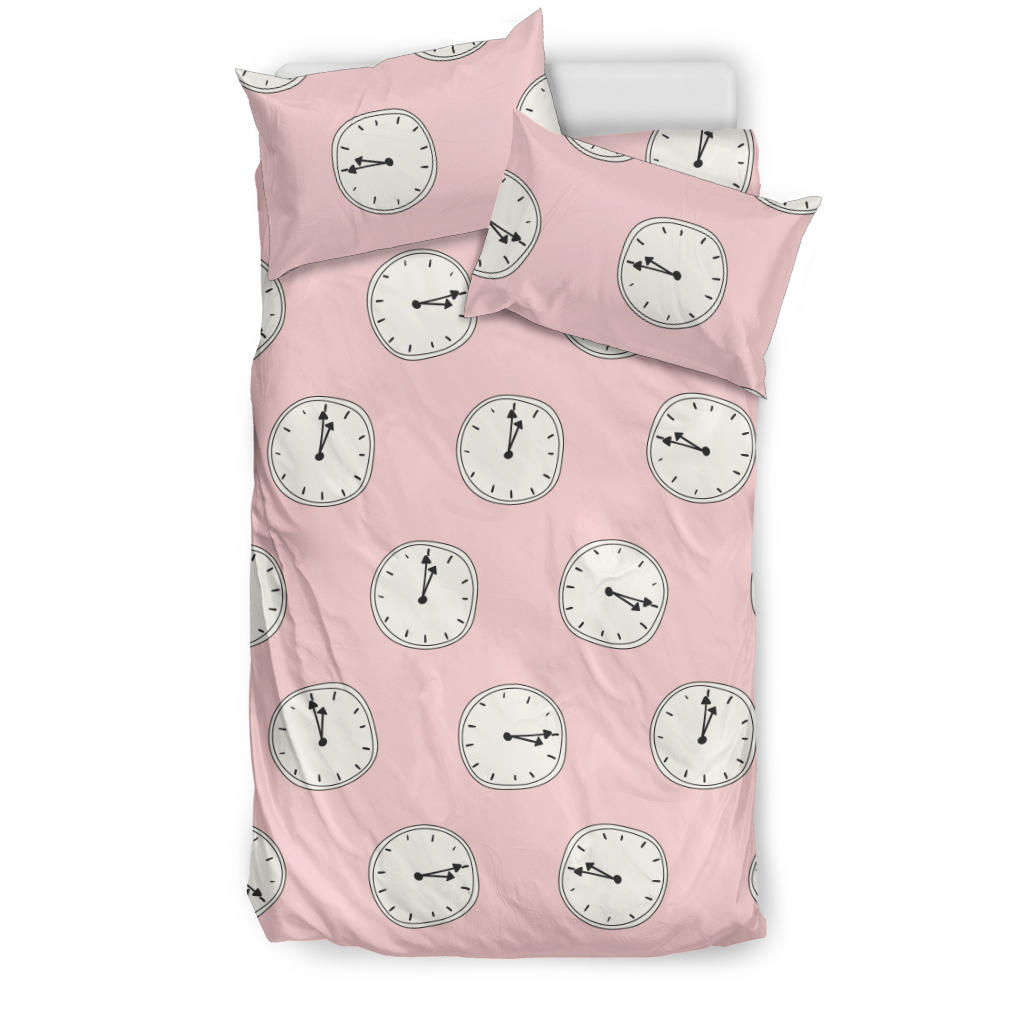 Clock pattern pink blackground Bedding Set is a uniqued design and limited item. It made to order, hand printed, and sewn with love in our factory.