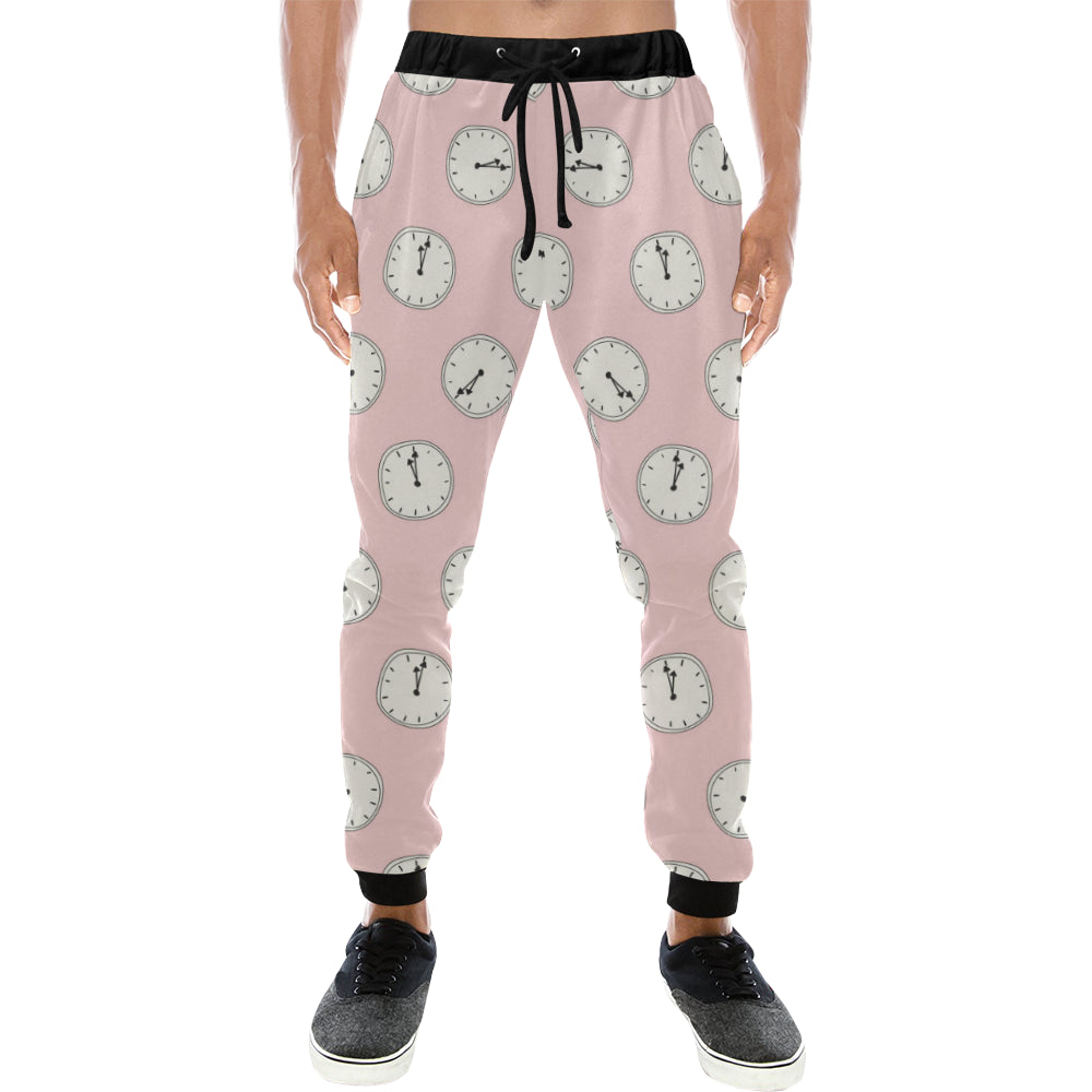 Clock pattern pink blackground Unisex Casual Sweatpants