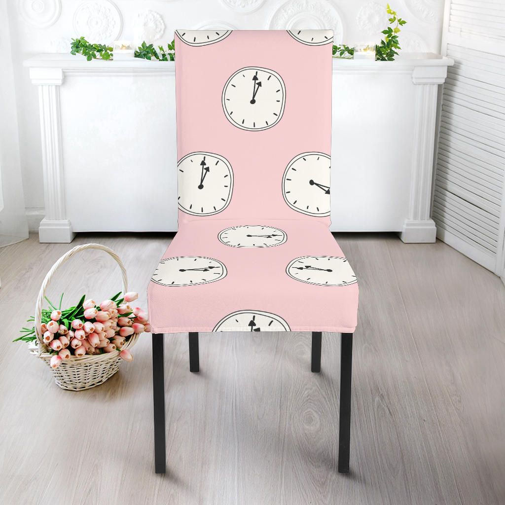 Clock Pattern Pink Blackground Dining Chair Slipcover