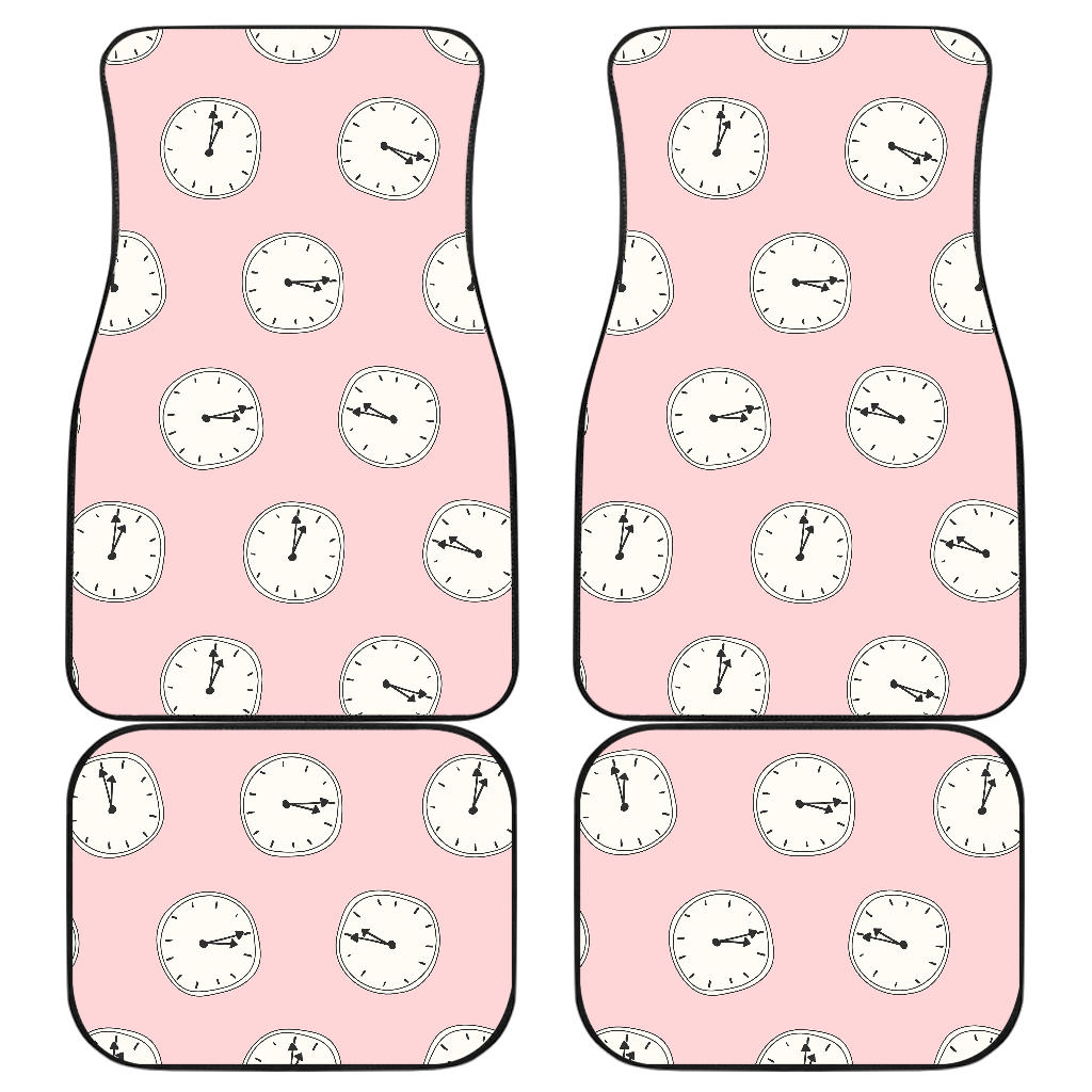 Clock Pattern Pink Blackground Front And Back Car Mats