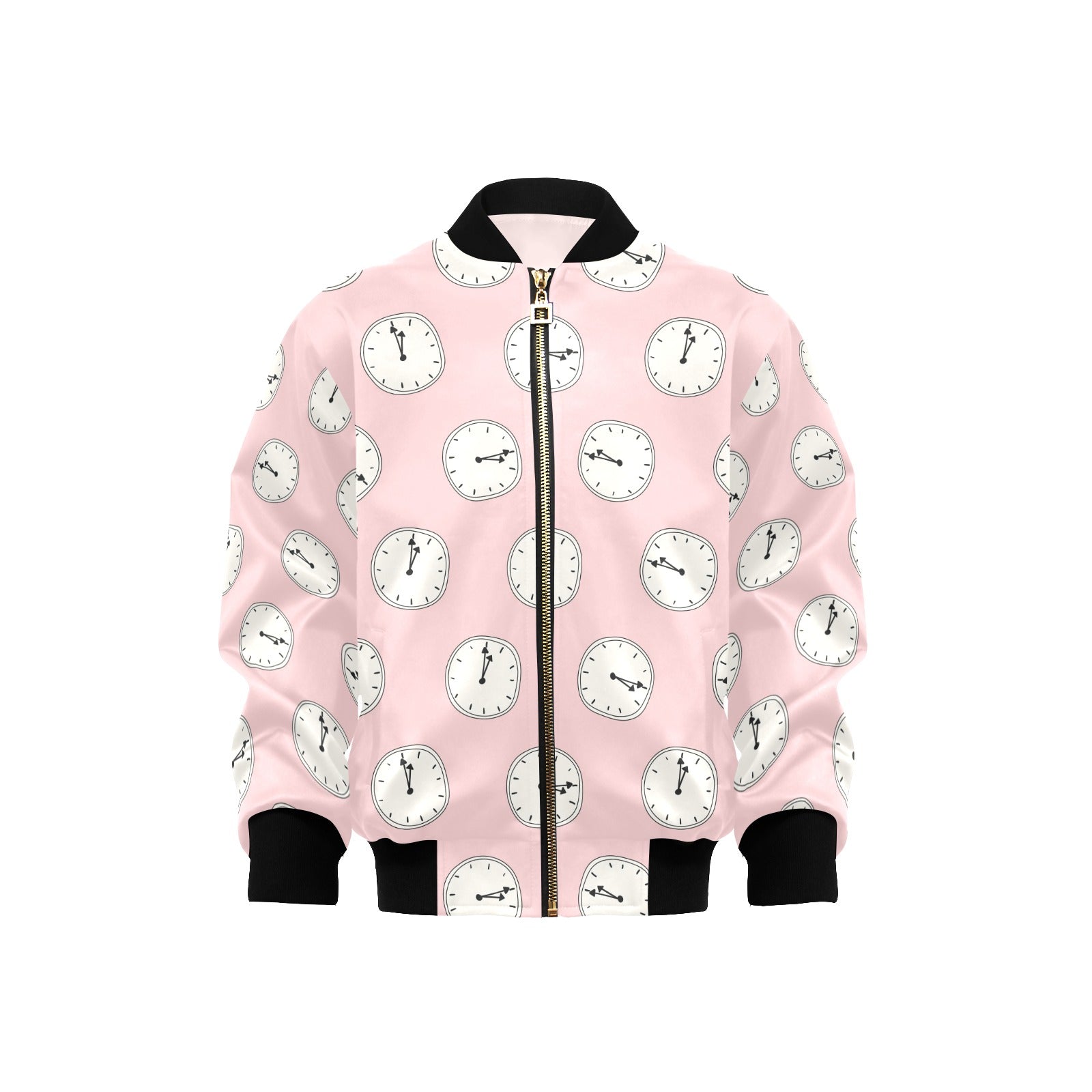 Clock pattern pink blackground Kids' Boys' Girls' Bomber Jacket