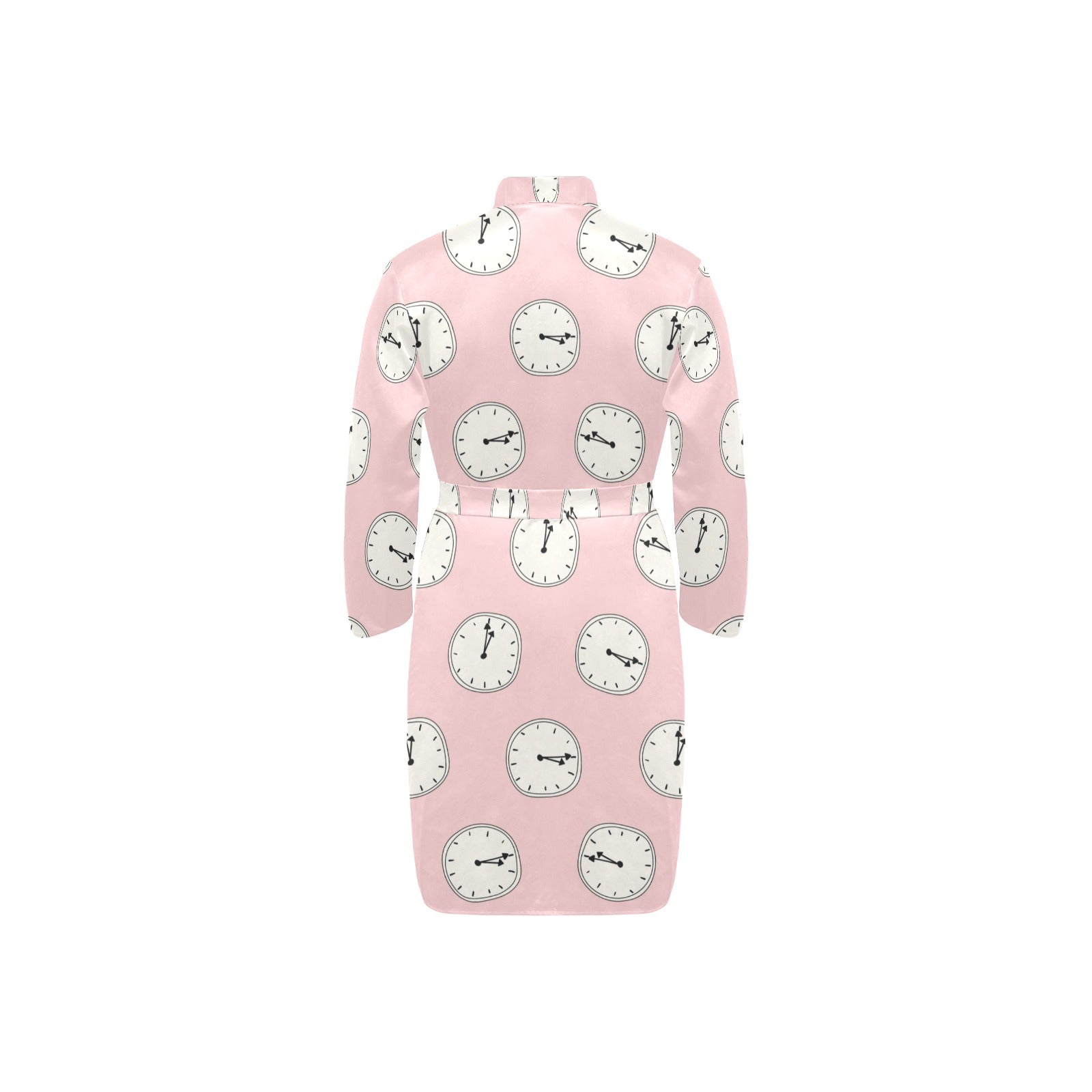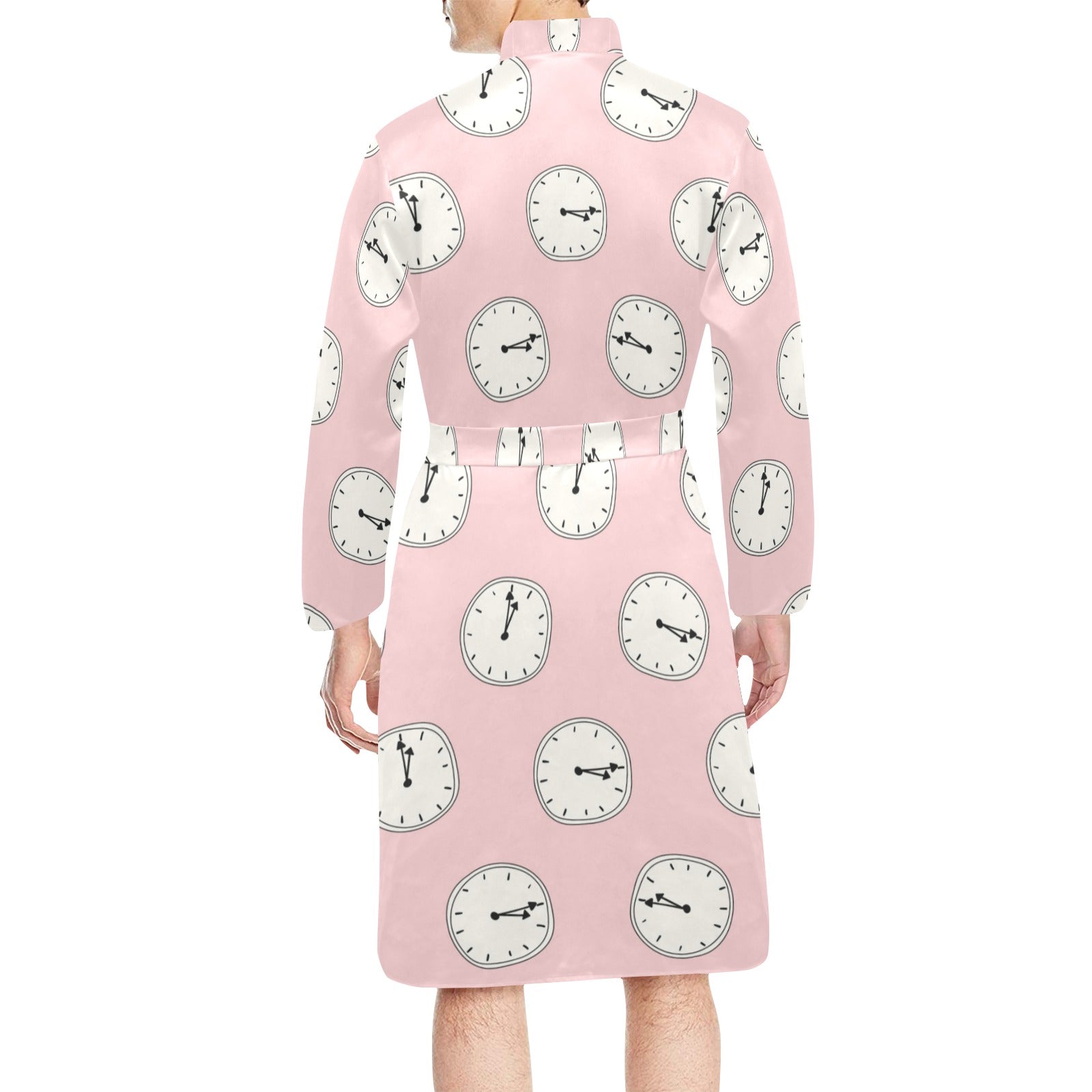 Clock pattern pink blackground Men's Long Sleeve Belted Night Robe