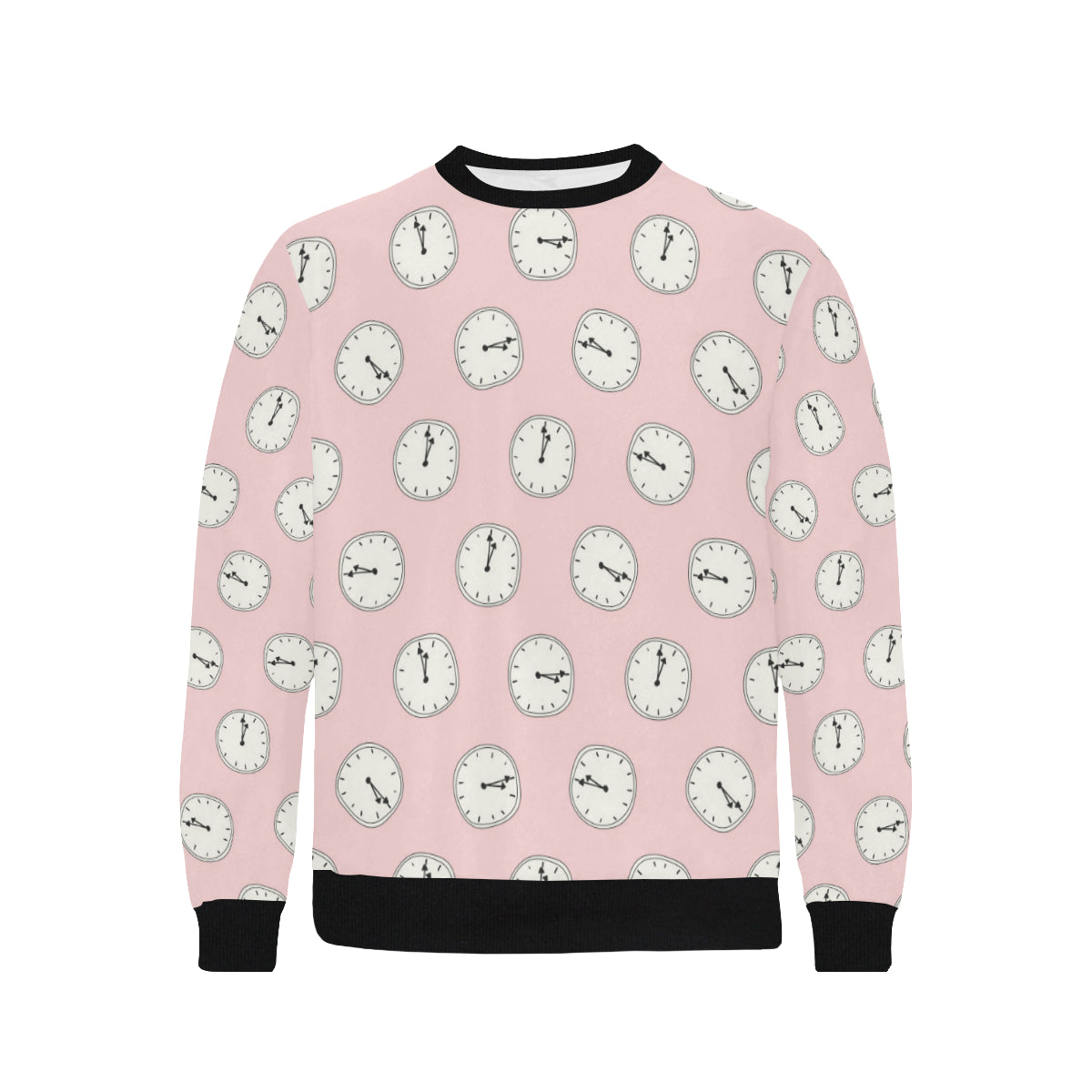 Clock pattern pink blackground Men's Crew Neck Sweatshirt is a uniqued design and limited item. It made to order, hand printed, and sewn with love in our factory.