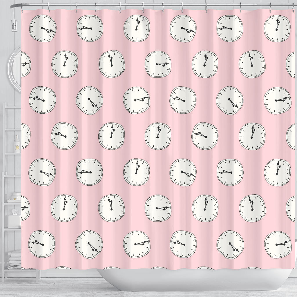 Clock Pattern Pink Blackground Shower Curtain Fulfilled In US