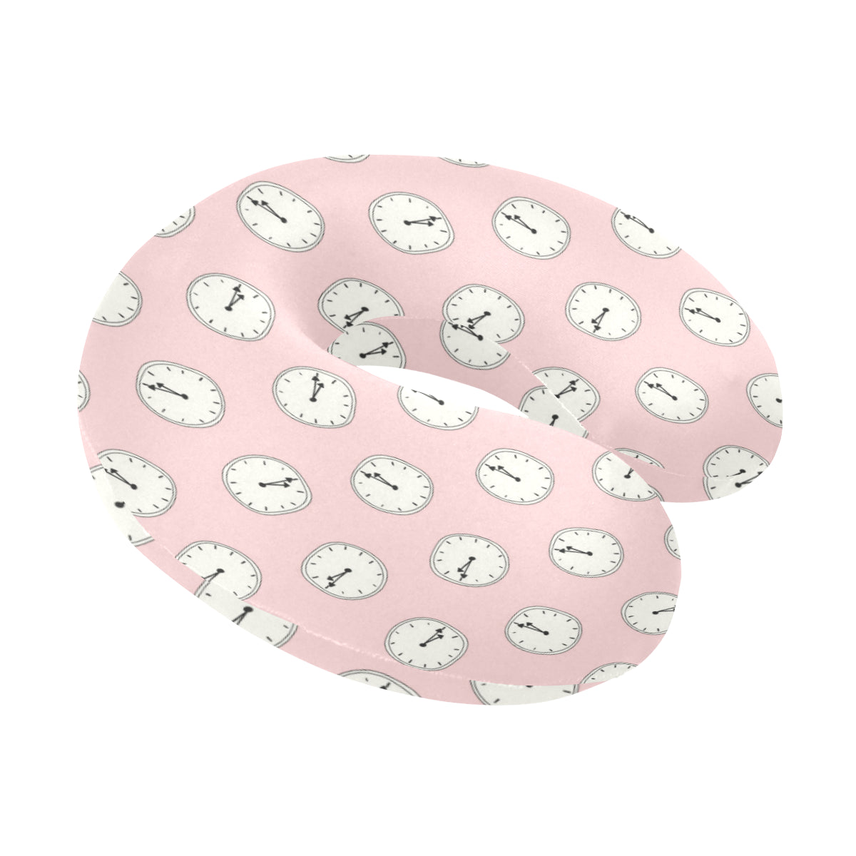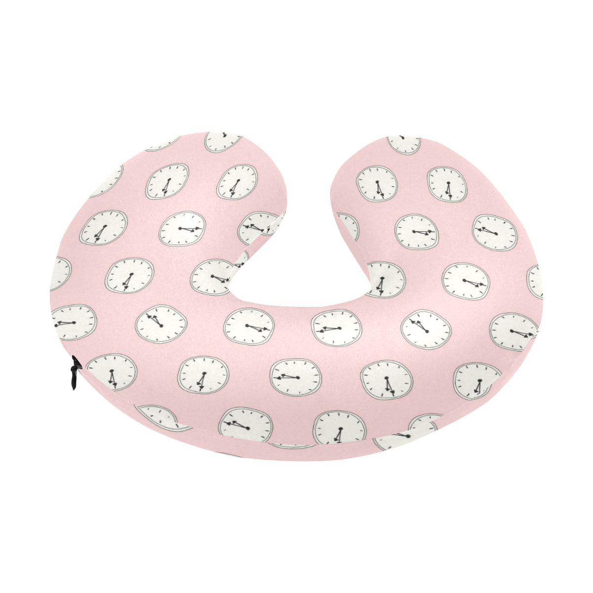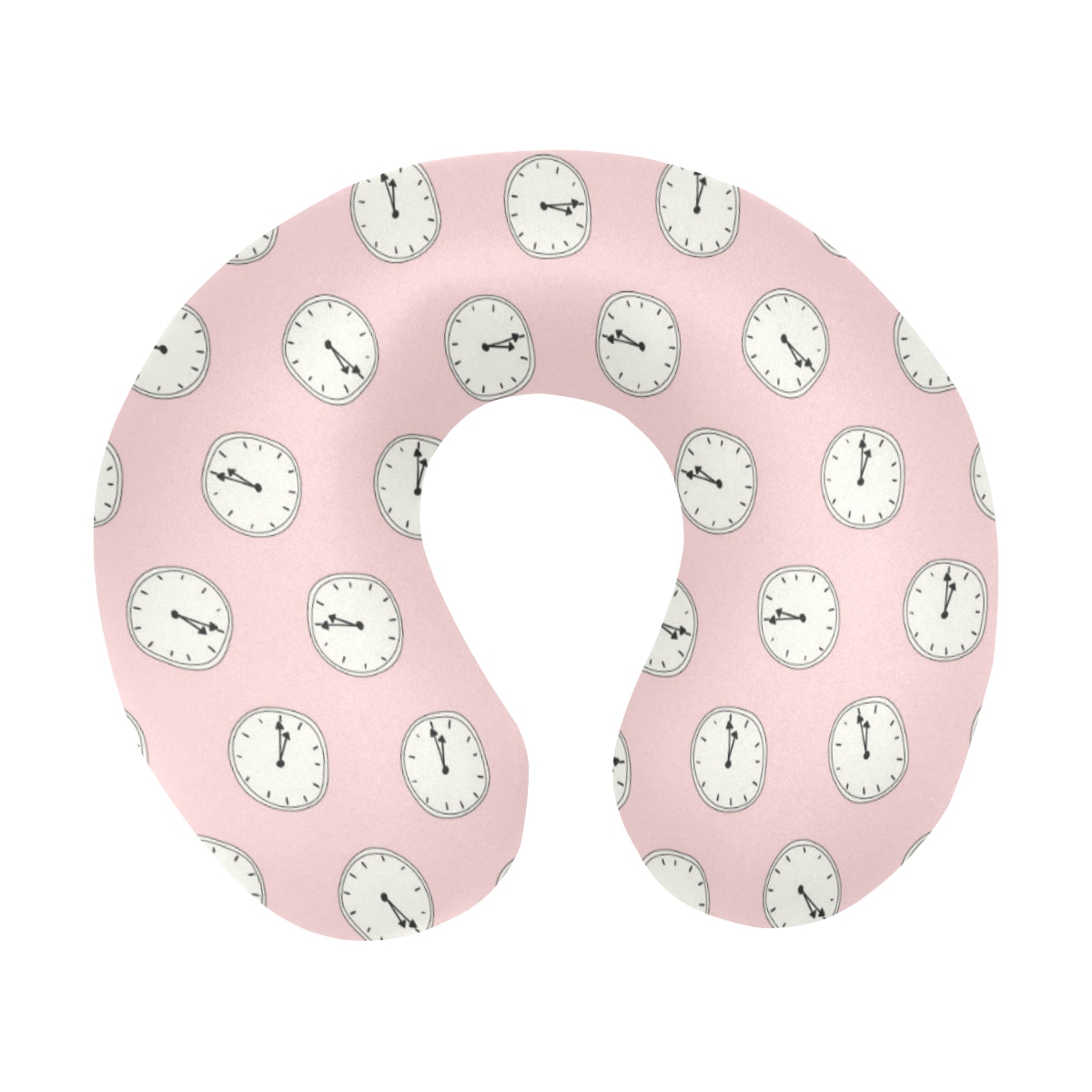 Clock pattern pink blackground U-Shaped Travel Neck Pillow