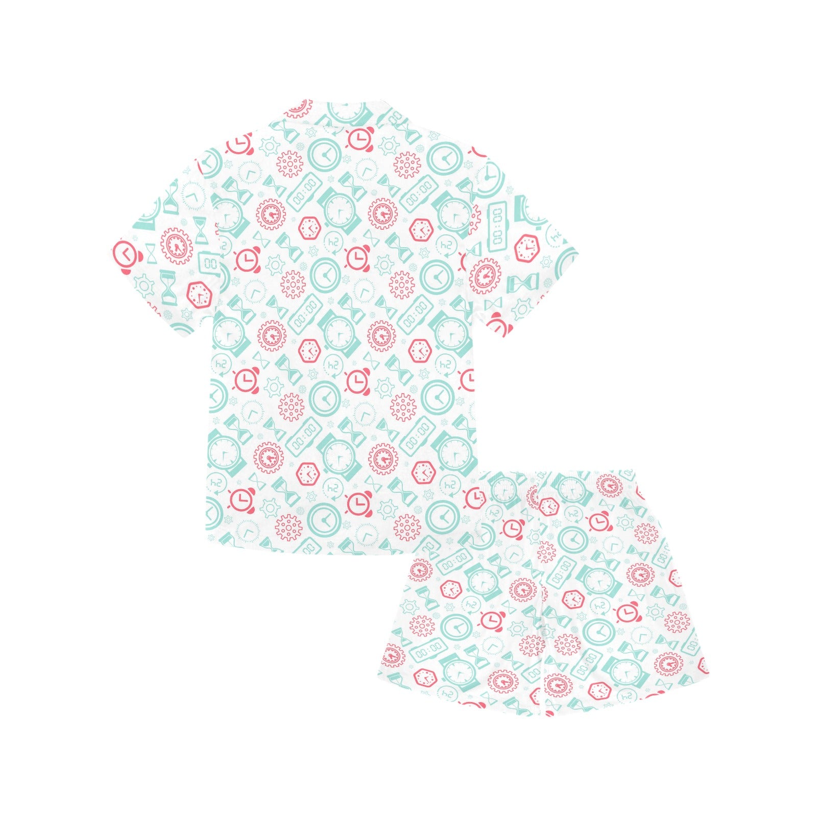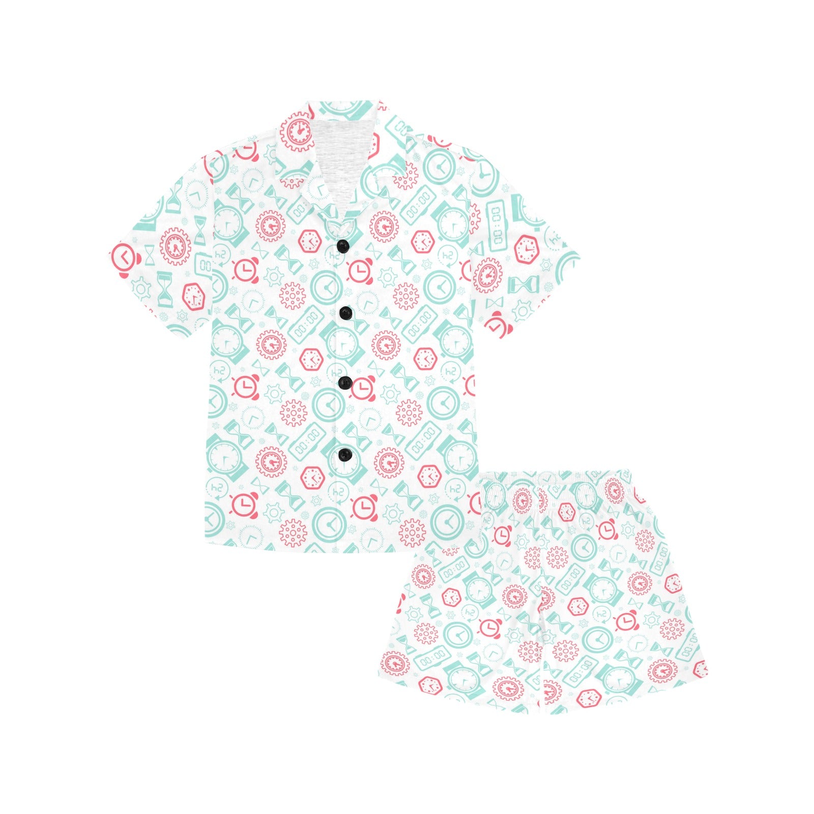 Clock time pattern blackground Kids' Boys' Girls' V-Neck Short Pajama Set