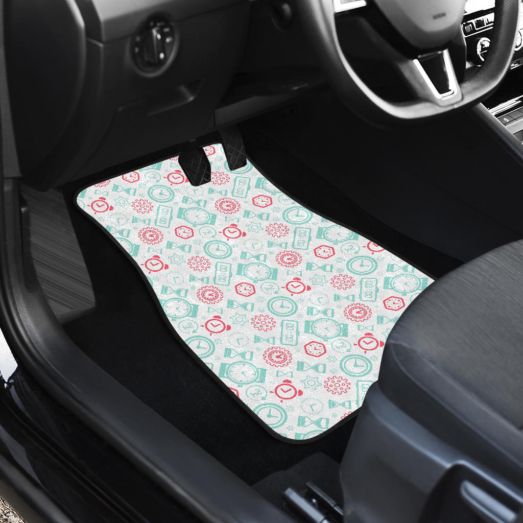 Clock time pattern blackground Front Car Mats are uniqued design and limited item. It made to order, hand printed, and sewn with love in our factory.