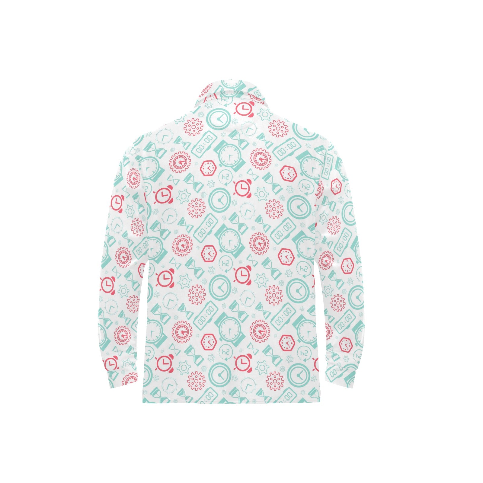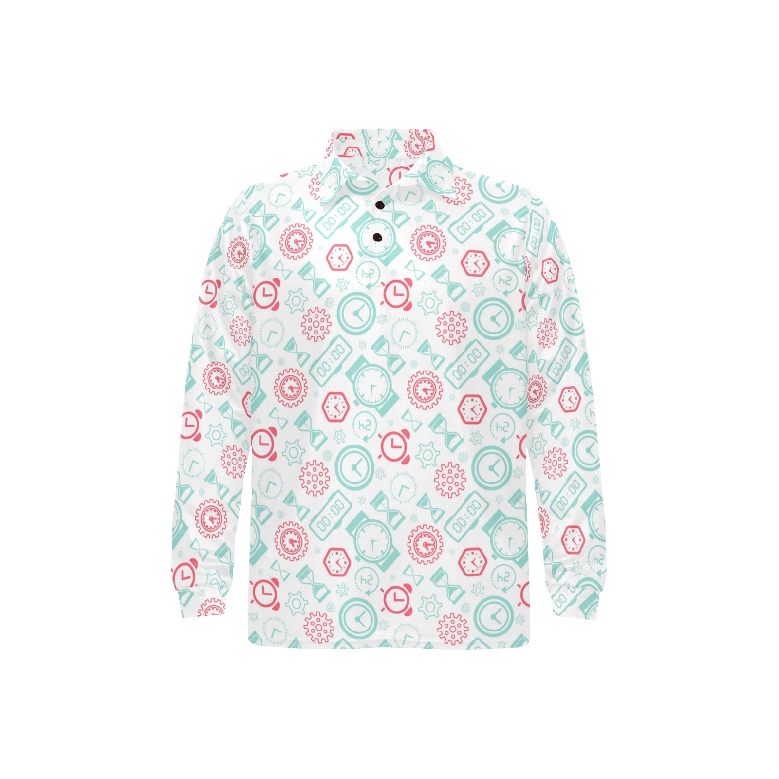 Clock time pattern blackground Men's Long Sleeve Polo Shirt