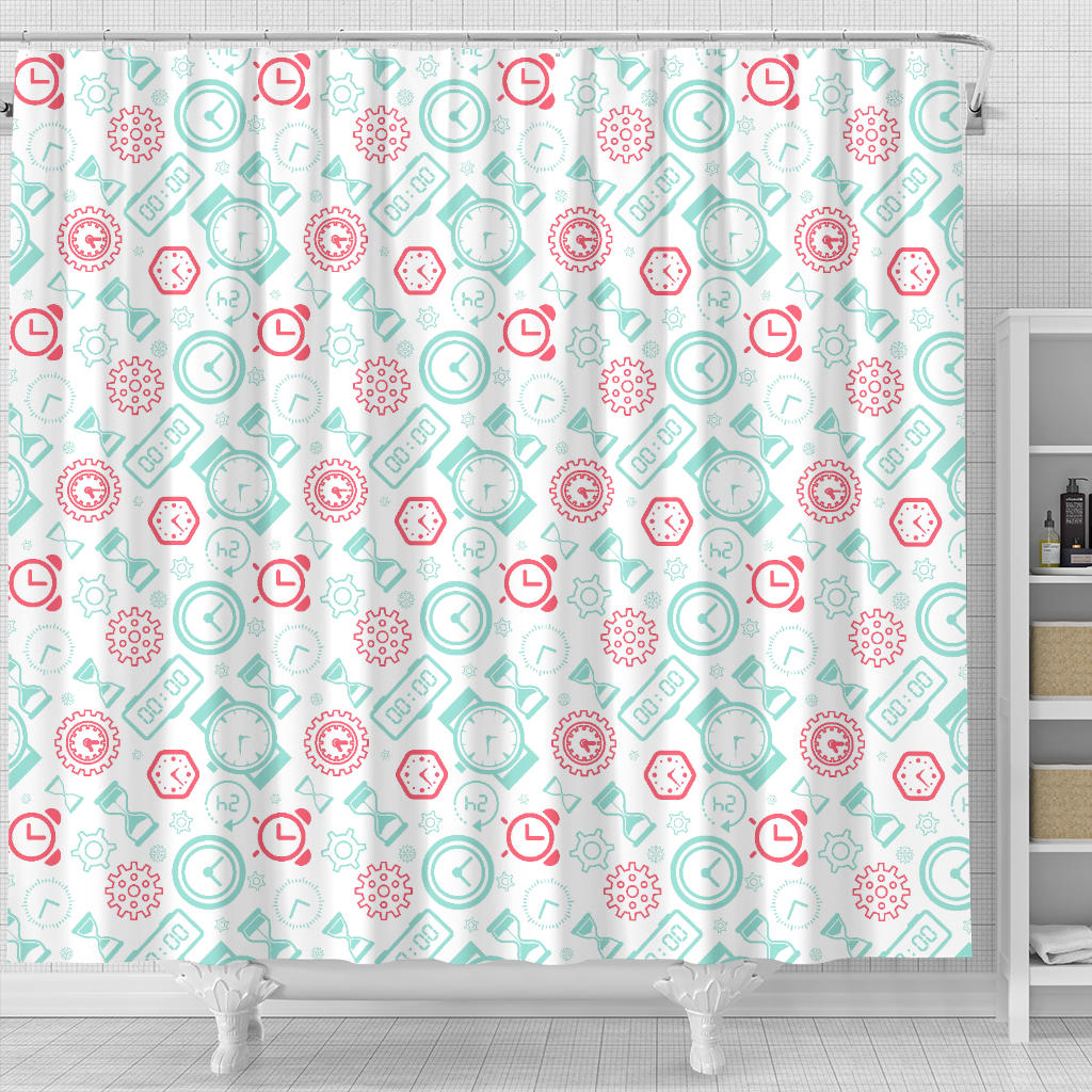 Clock Time Pattern Blackground Shower Curtain Fulfilled In US