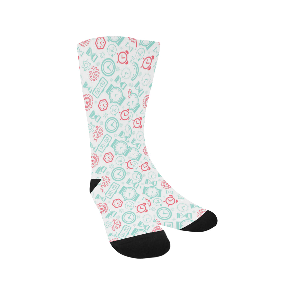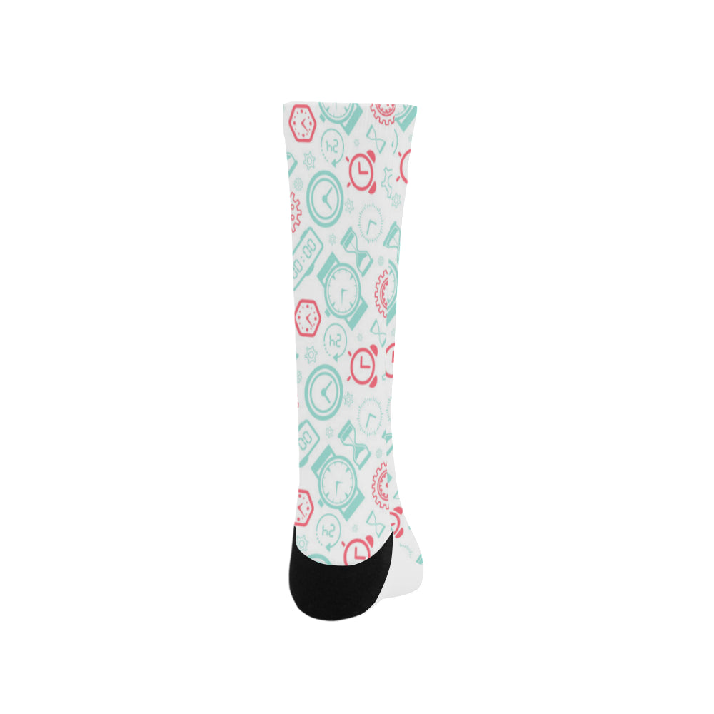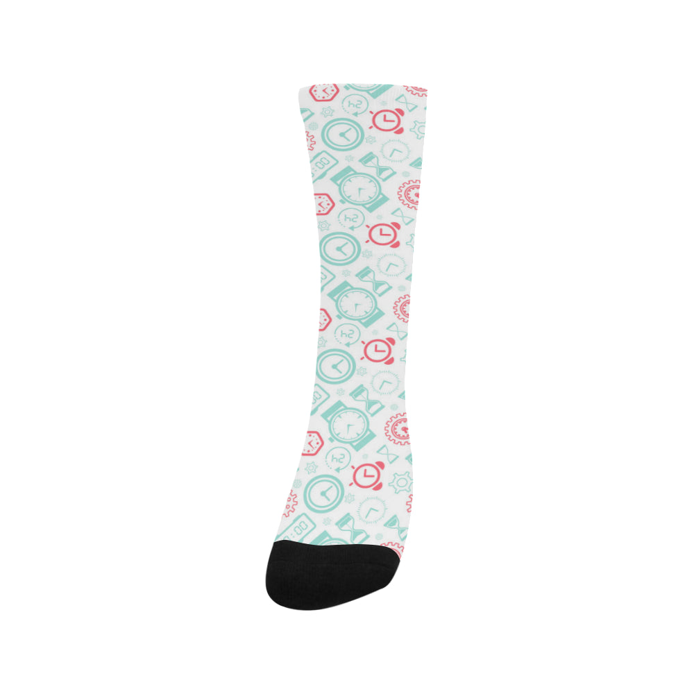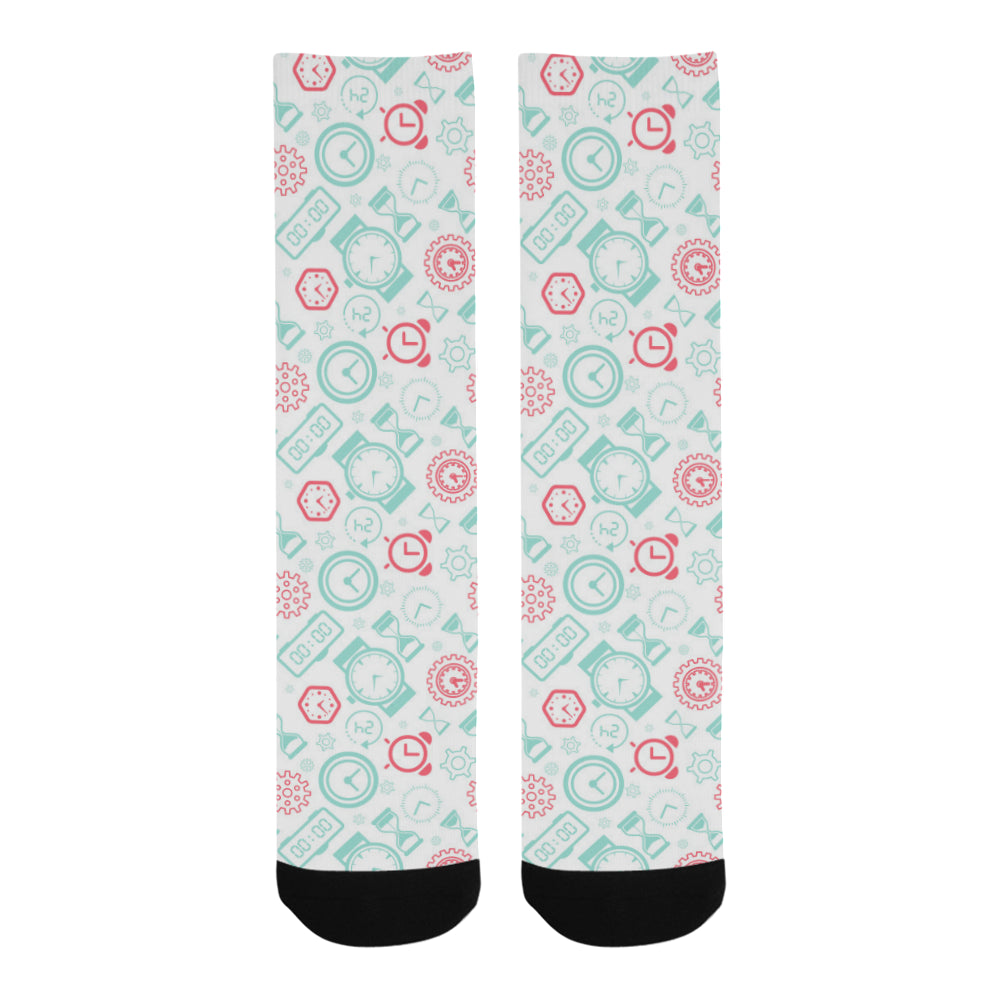 Clock time pattern blackground Crew Socks are uniqued design and limited item. It made to order, hand printed, and sewn with love in our factory.