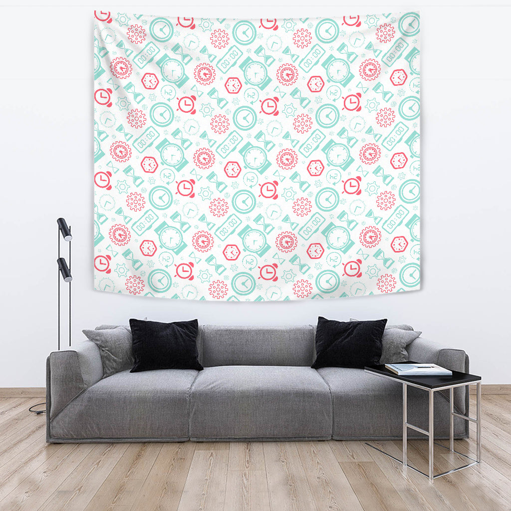Clock Time Pattern Blackground Wall Tapestry