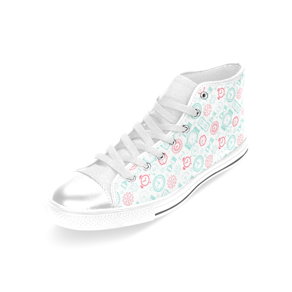 Clock time pattern blackground Women's High Top Canvas Shoes White