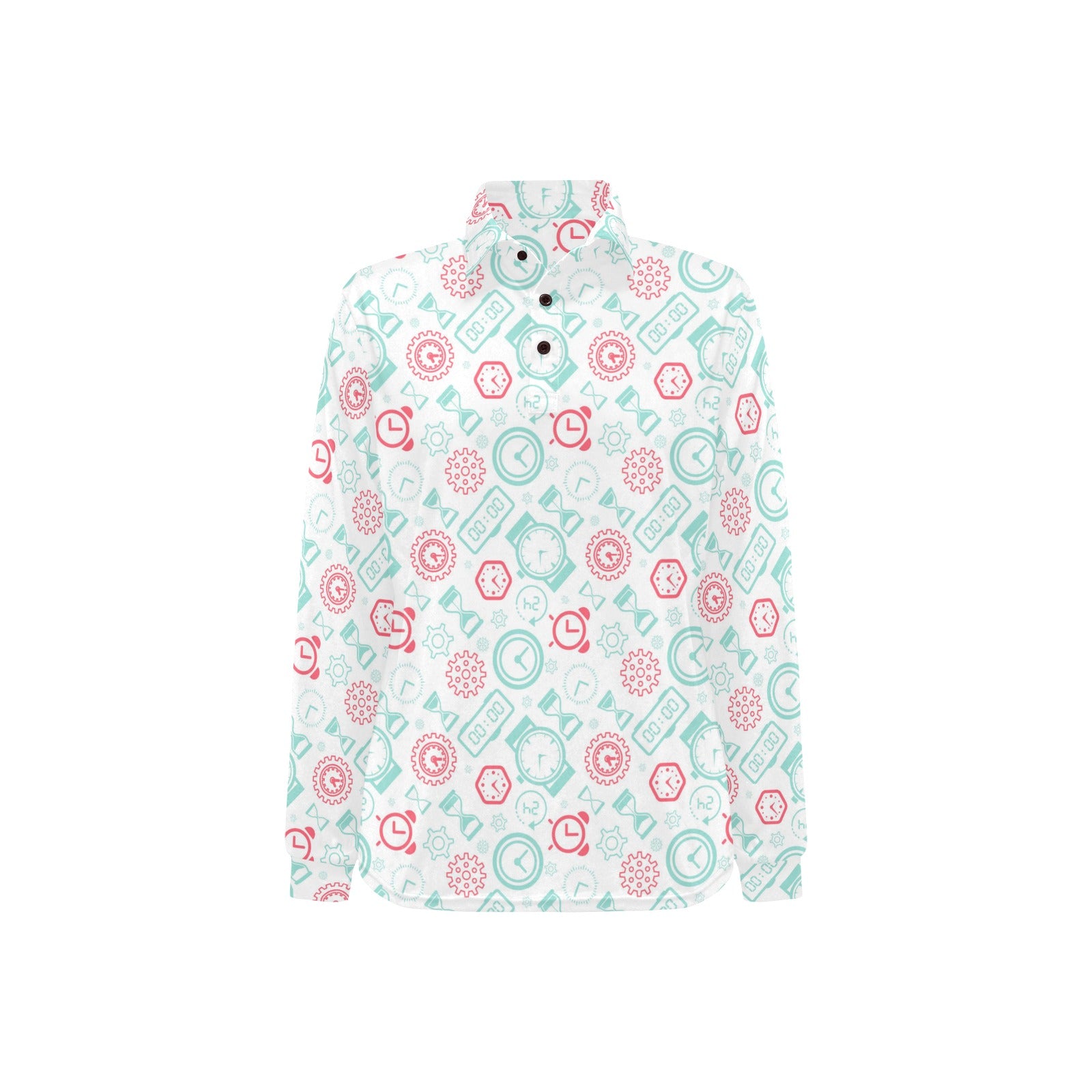 Clock time pattern blackground Women's Long Sleeve Polo Shirt