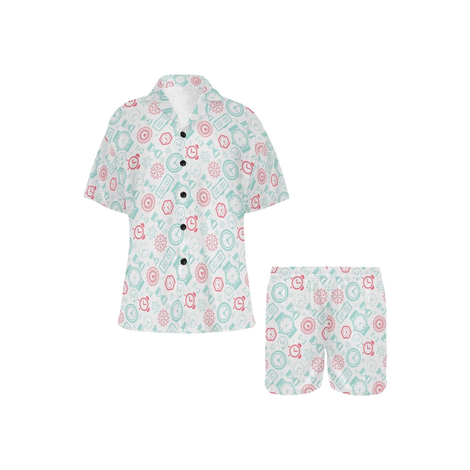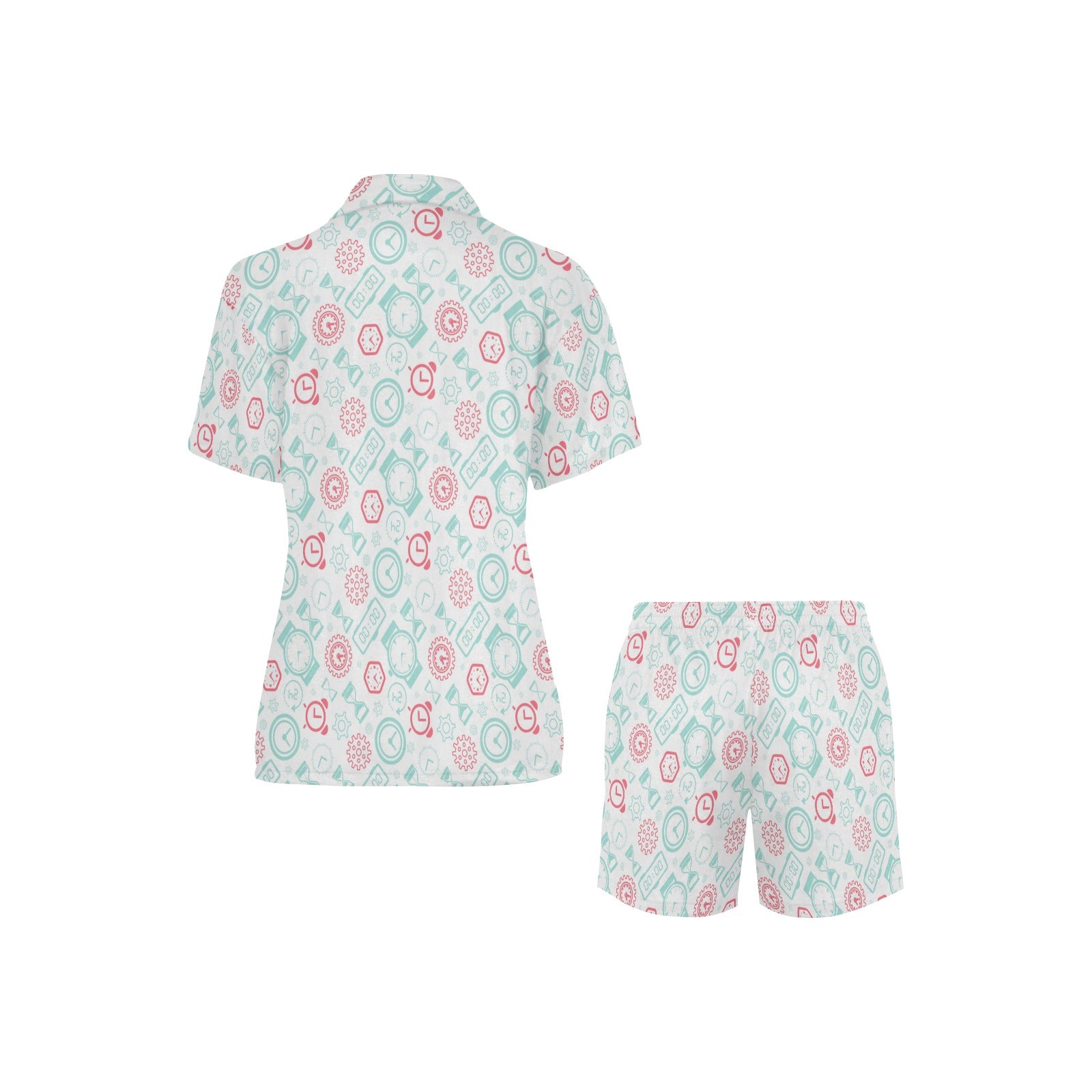 Clock time pattern blackground Women's V-Neck Short Pajama Set