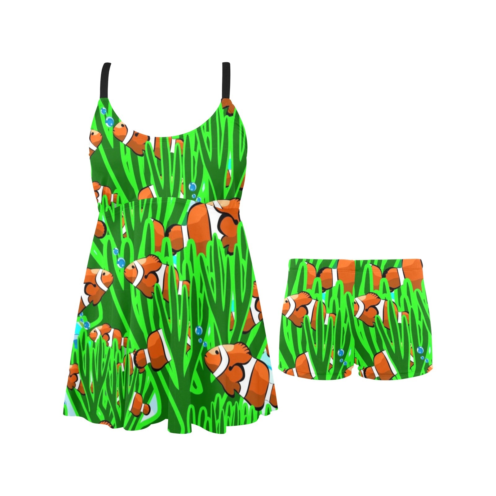 Clown Fish Pattern Print Design 01 Chest Sexy Pleated Two Piece Swim Dress