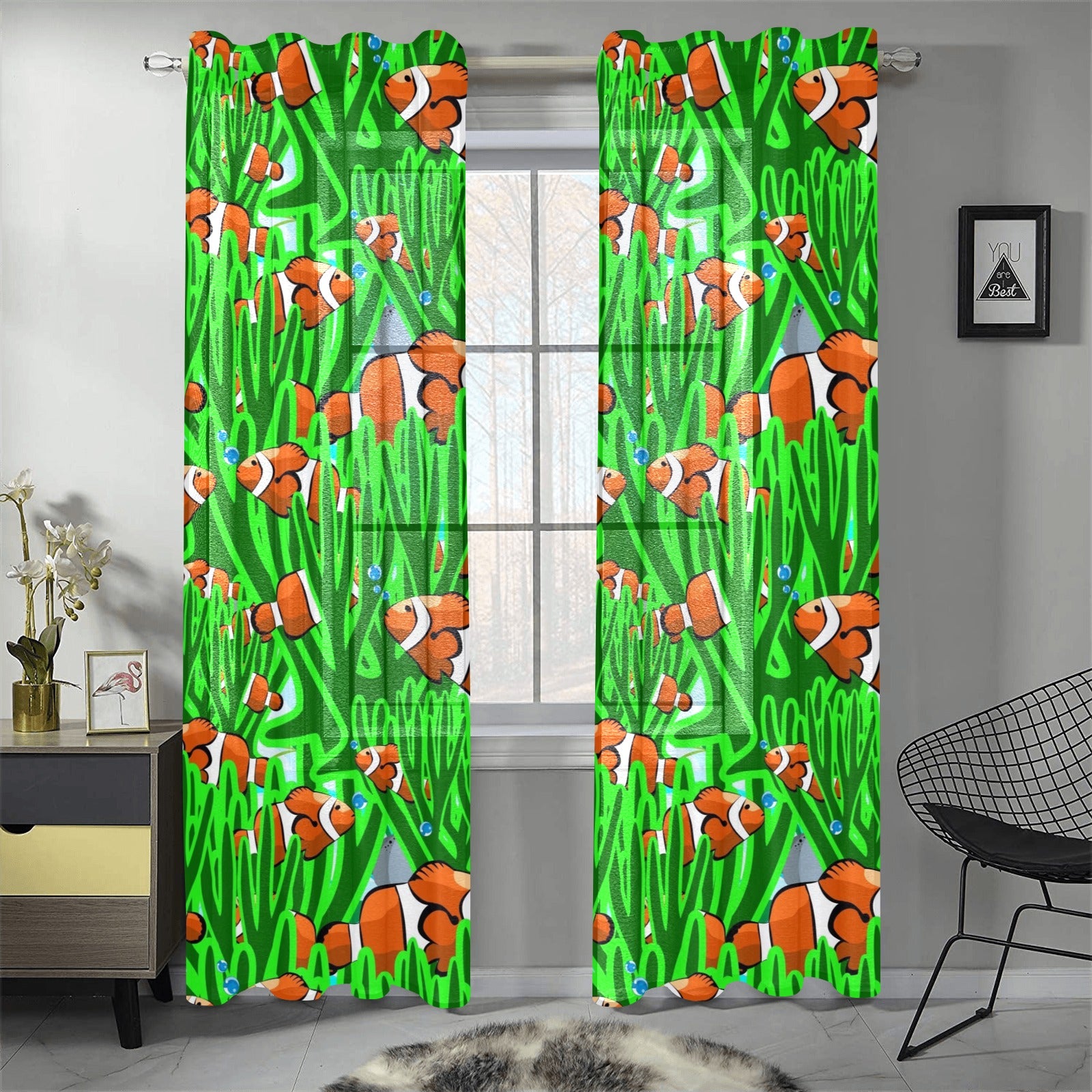 Clown Fish Pattern Print Design 01 Gauze Curtain
