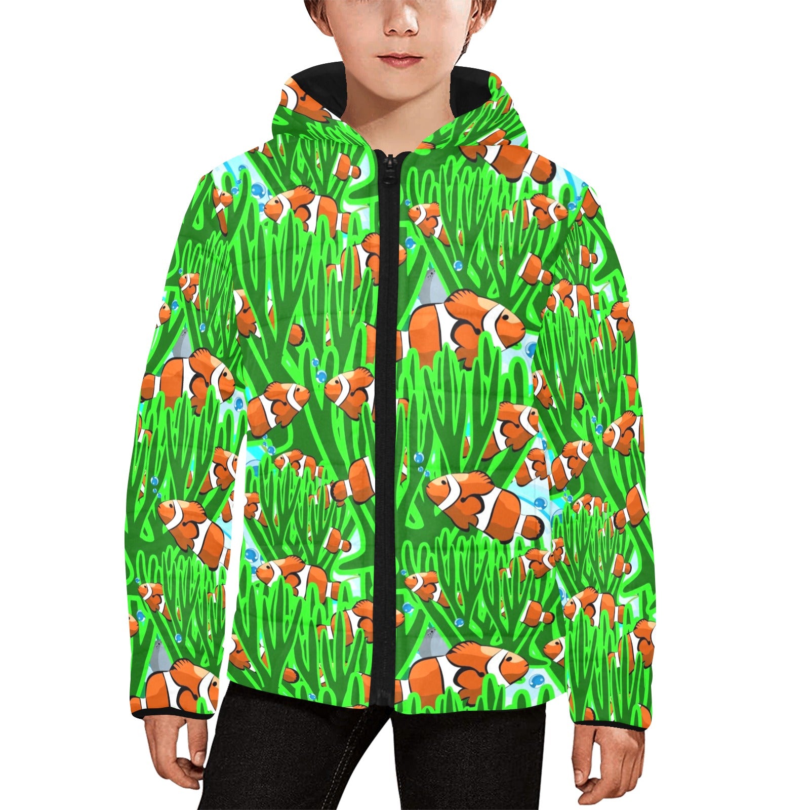 Clown Fish Pattern Print Design 01 Kids' Boys' Girls' Padded Hooded Jacket