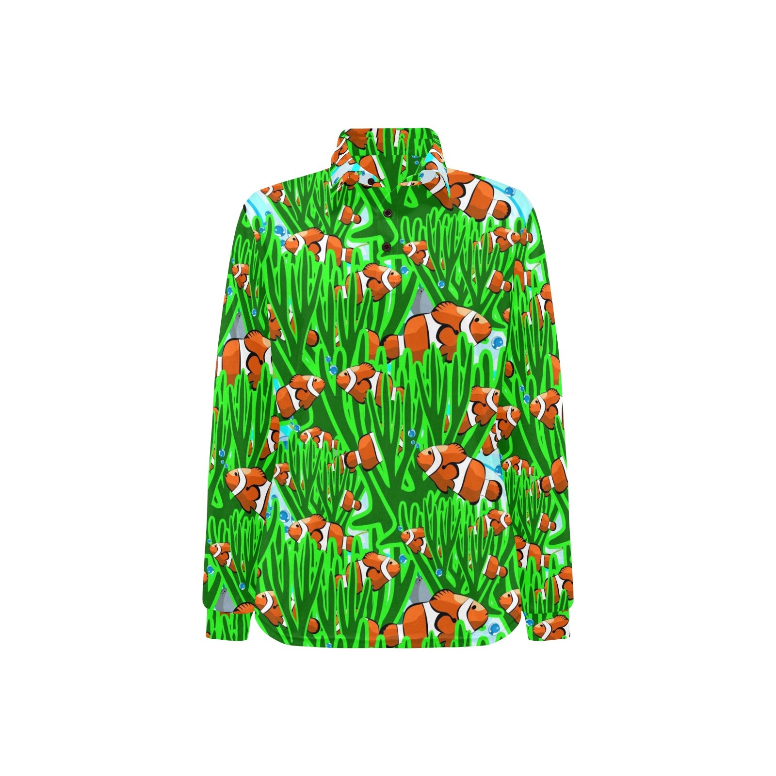 Clown Fish Pattern Print Design 01 Women's Long Sleeve Polo Shirt