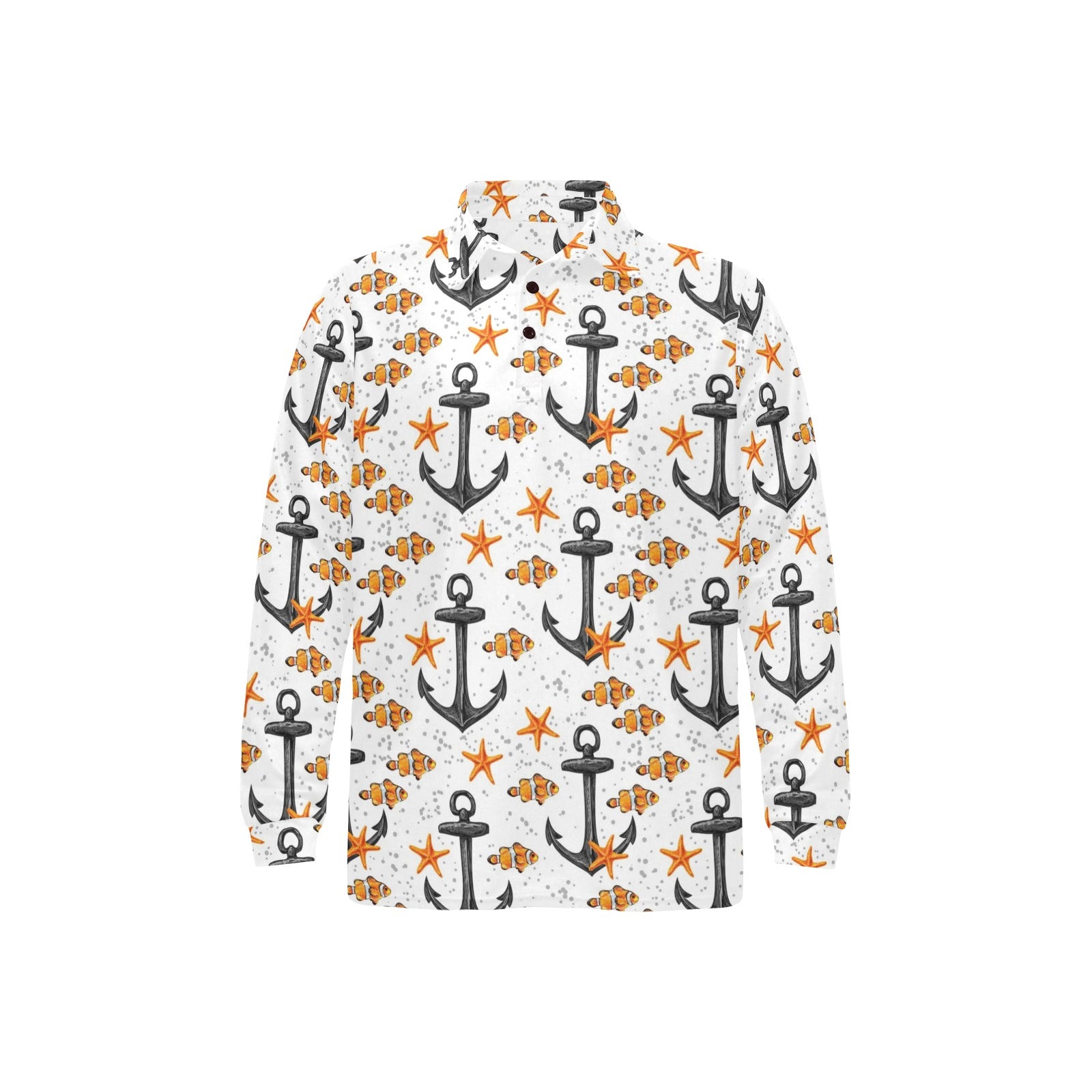Clown Fish Pattern Print Design 02 Men's Long Sleeve Polo Shirt