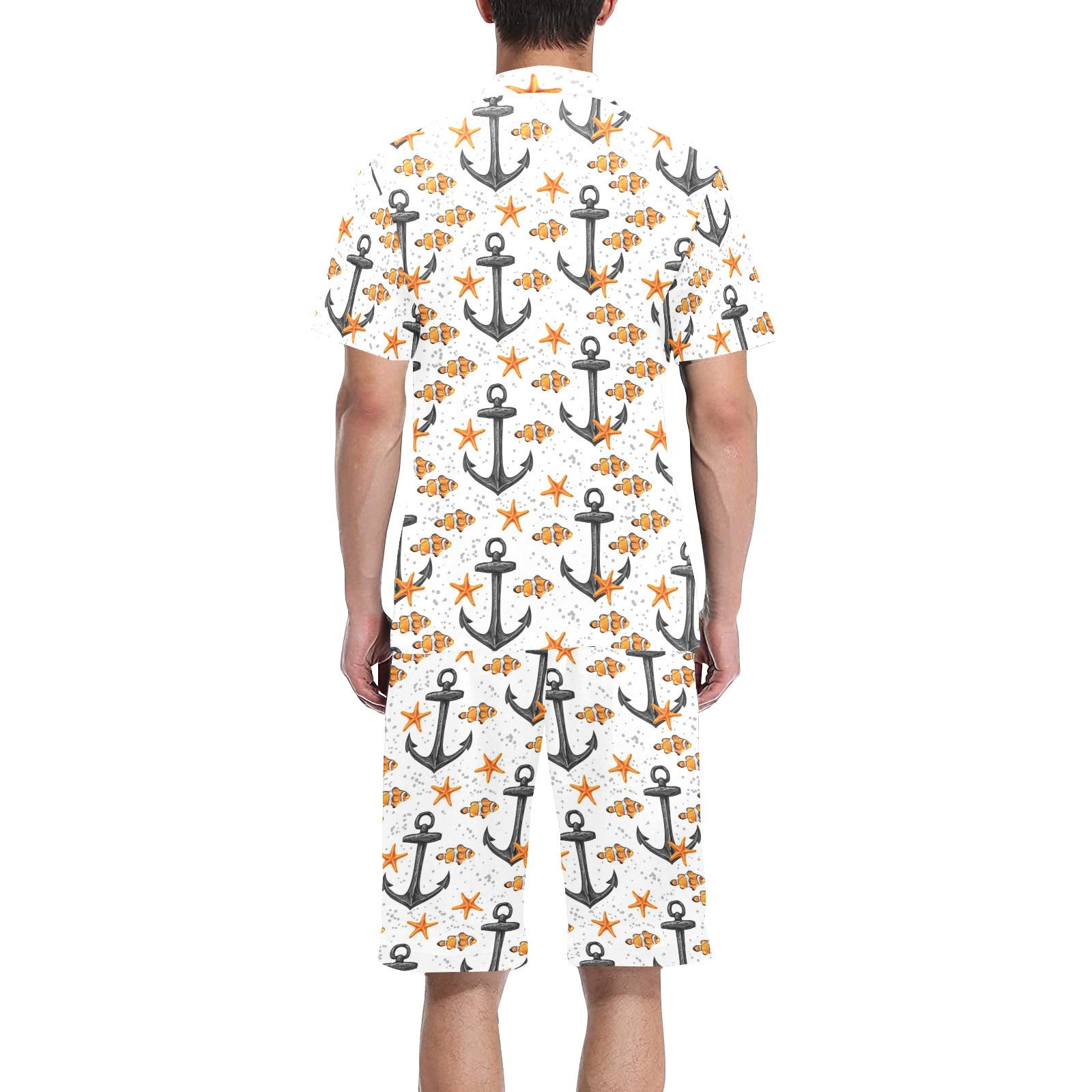Clown Fish Pattern Print Design 02 Men's V-Neck Short Pajama Set