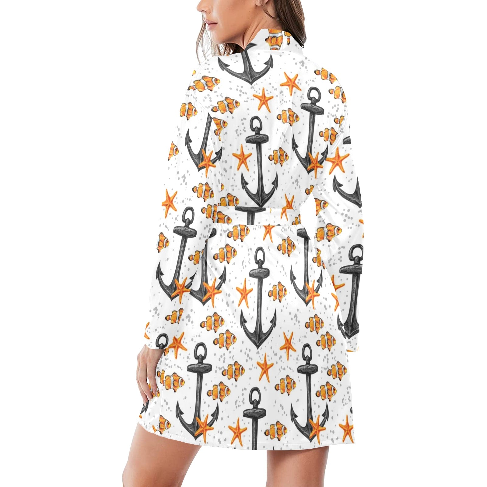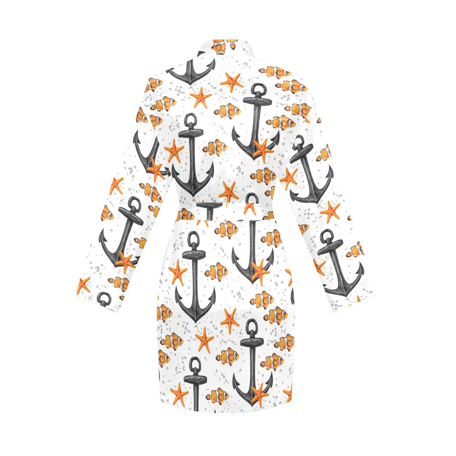 Clown Fish Pattern Print Design 02 Women's Long Sleeve Belted Night Robe