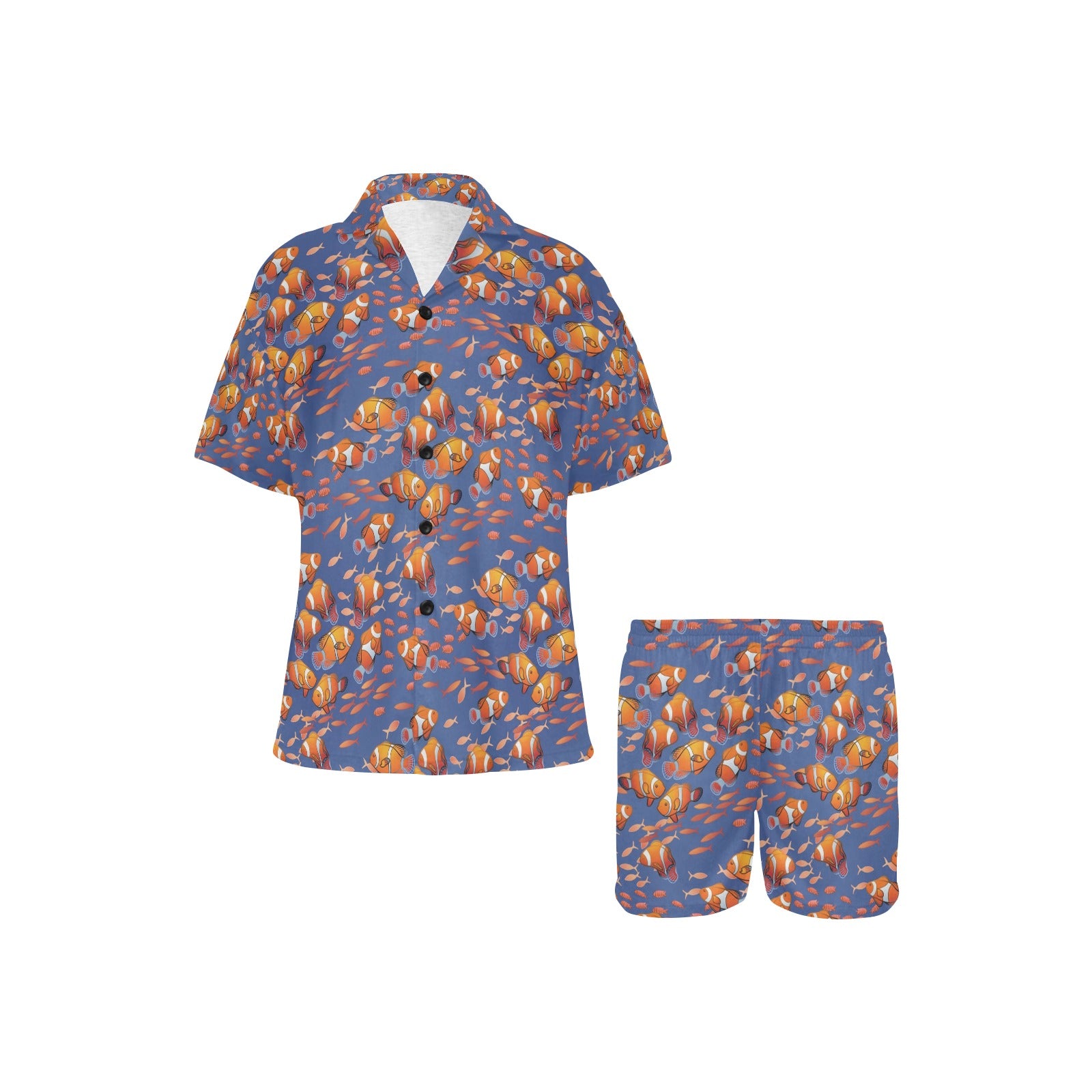 Clown Fish Pattern Print Design 04 Women's V-Neck Short Pajama Set