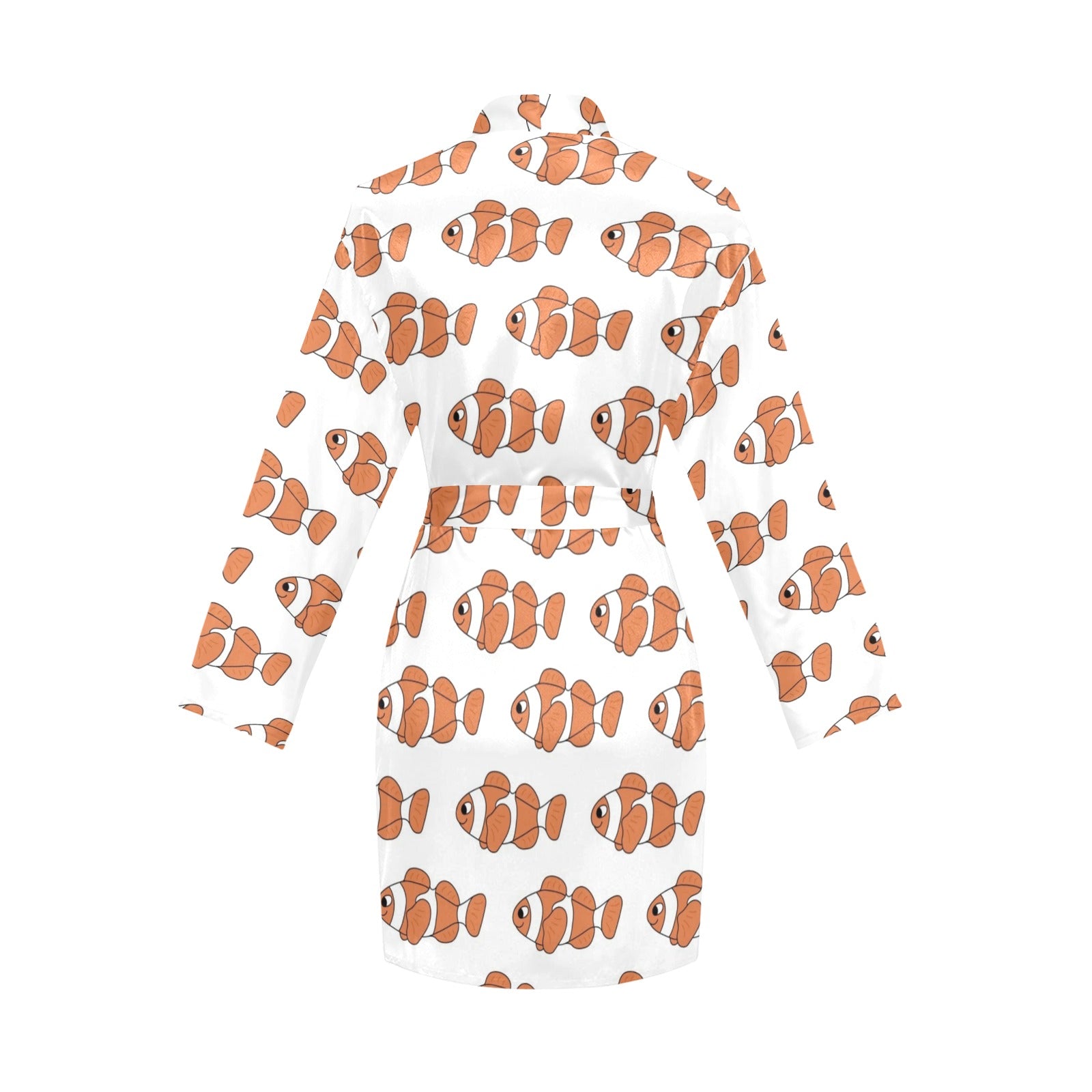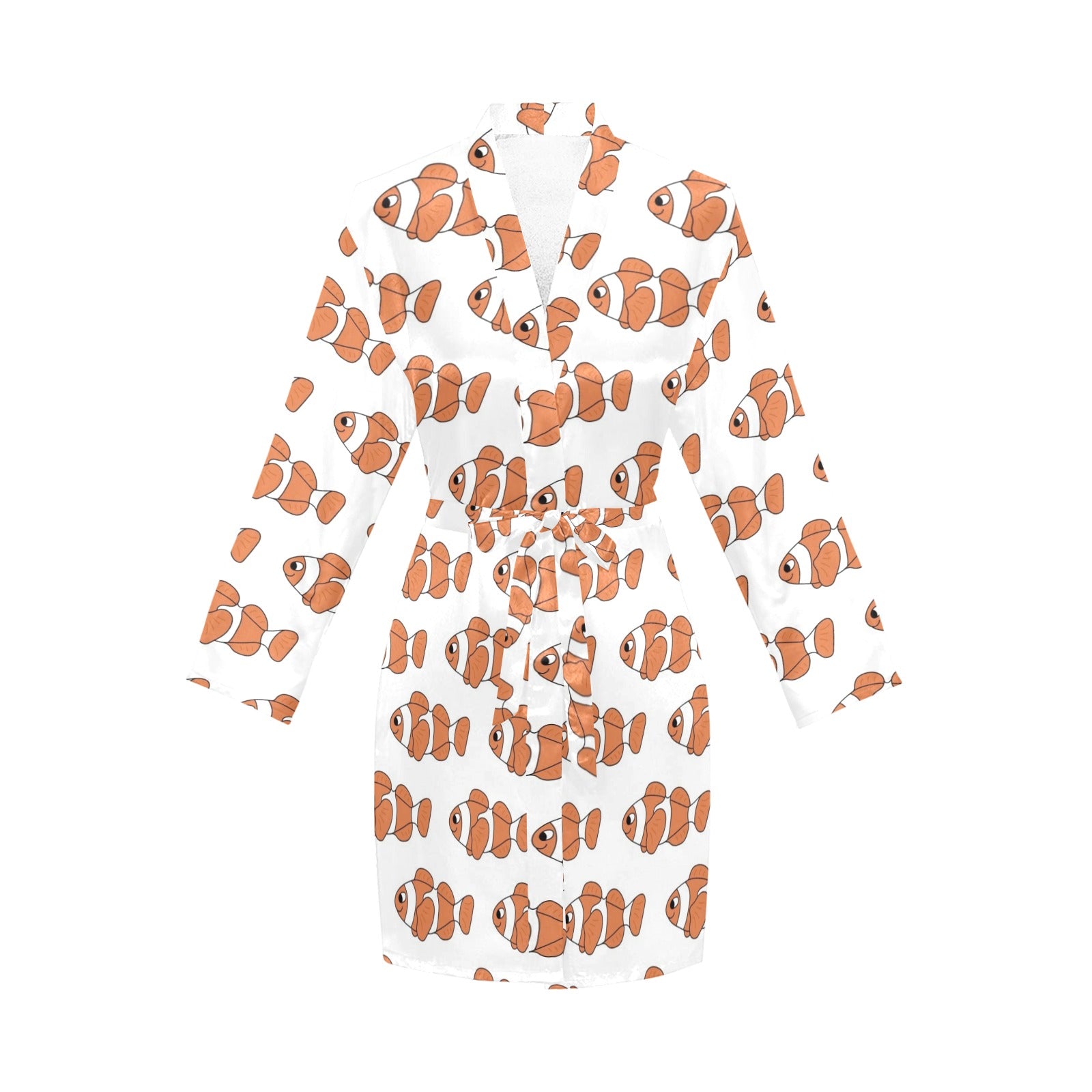 Clown Fish Pattern Print Design 05 Women's Long Sleeve Belted Night Robe