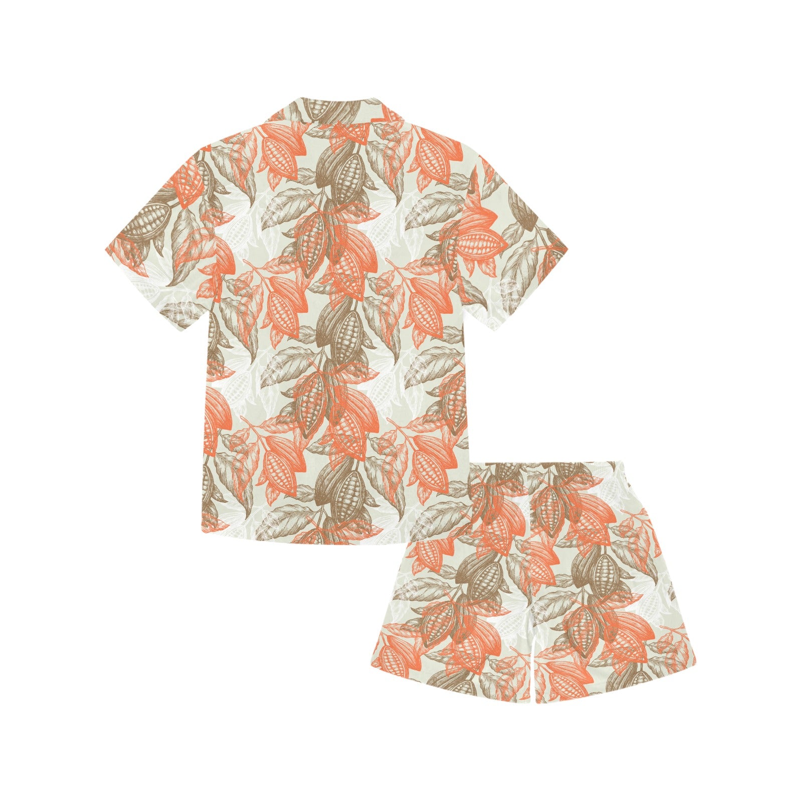 Cocoa beans Cocoa tree pattern Kids' Boys' Girls' V-Neck Short Pajama Set