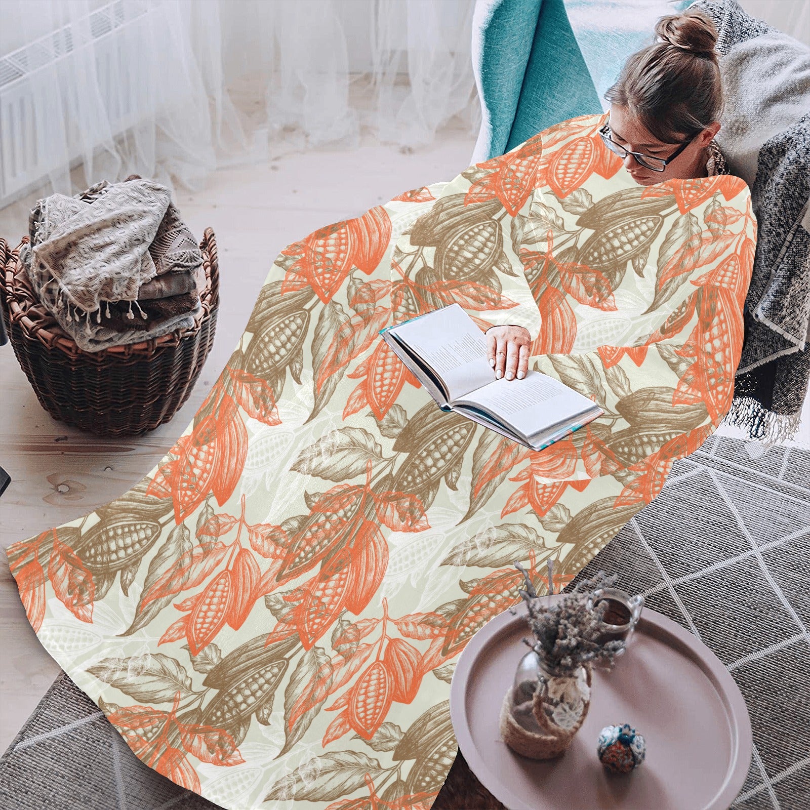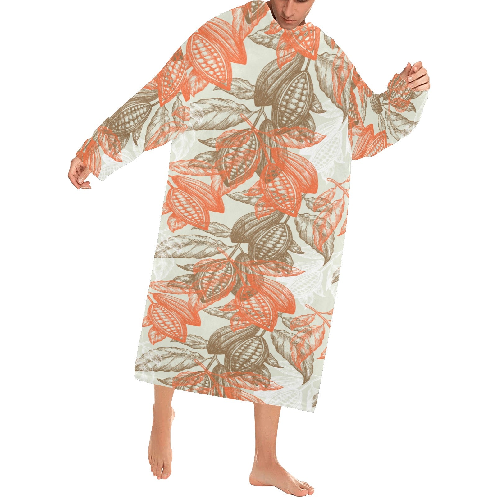 Cocoa beans Cocoa tree pattern Blanket Robe with Sleeves