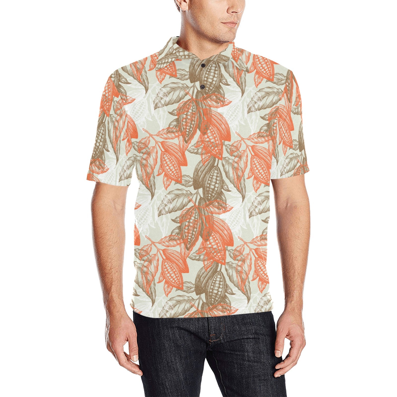 Cocoa beans Cocoa tree pattern Men's All Over Print Polo Shirt