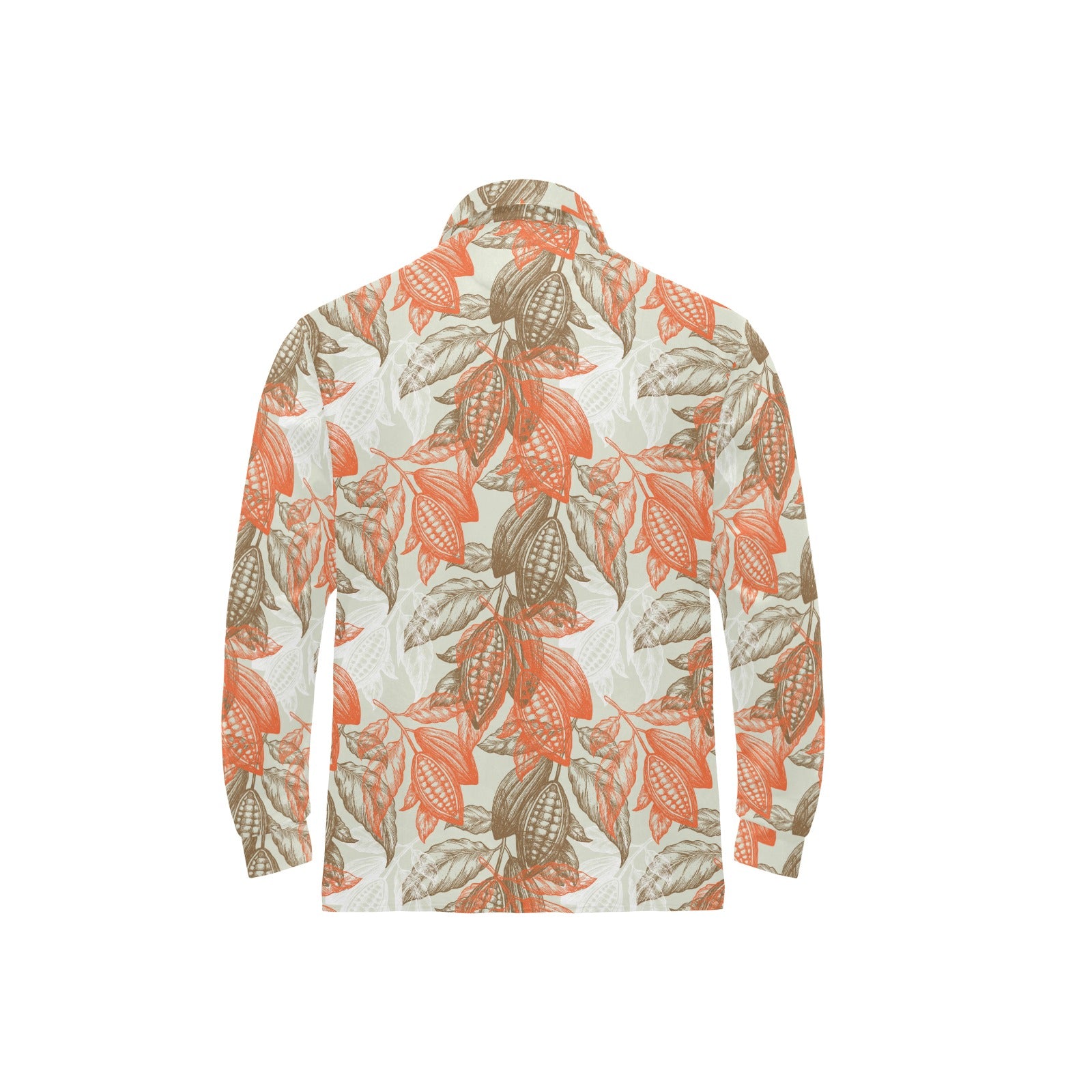 Cocoa beans Cocoa tree pattern Men's Long Sleeve Polo Shirt
