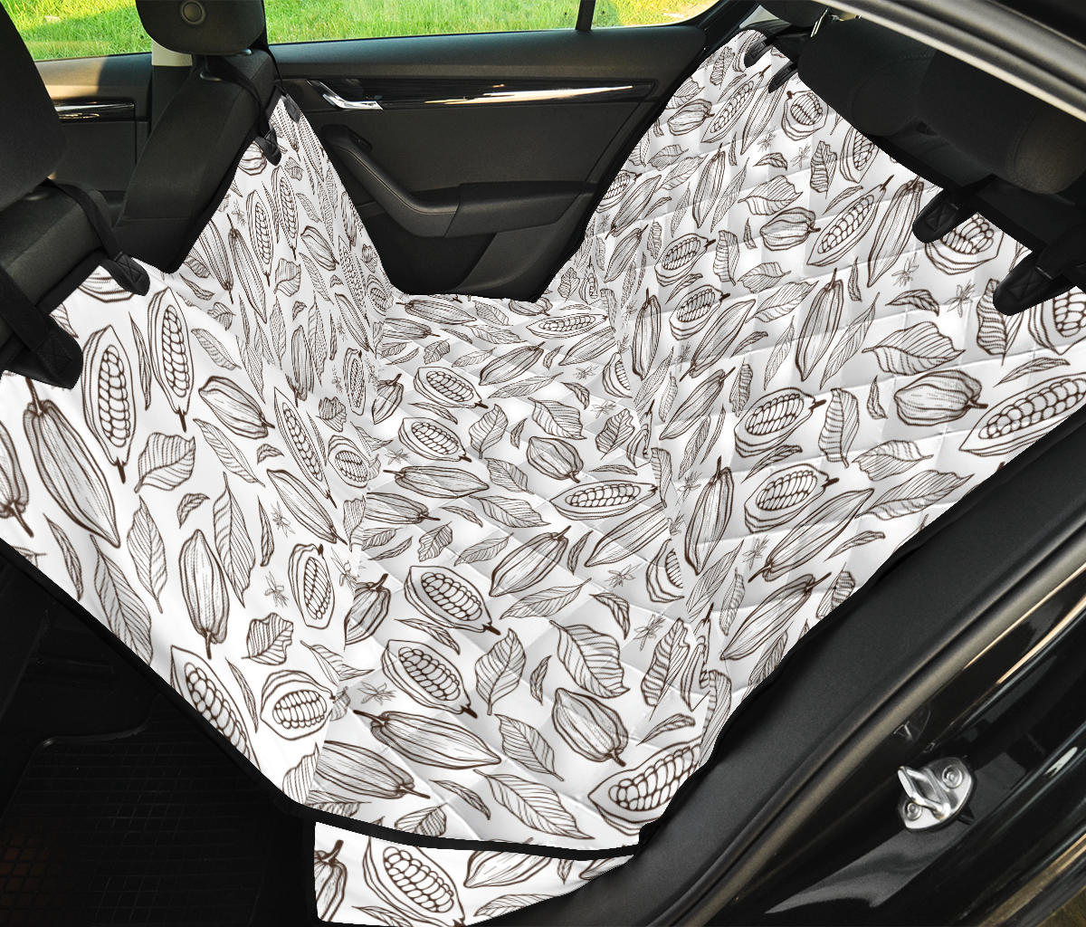 cocoa beans leaves pattern Dog Car Seat Covers is a uniqued design and limited item. It made to order, hand printed, and sewn with love in our factory.