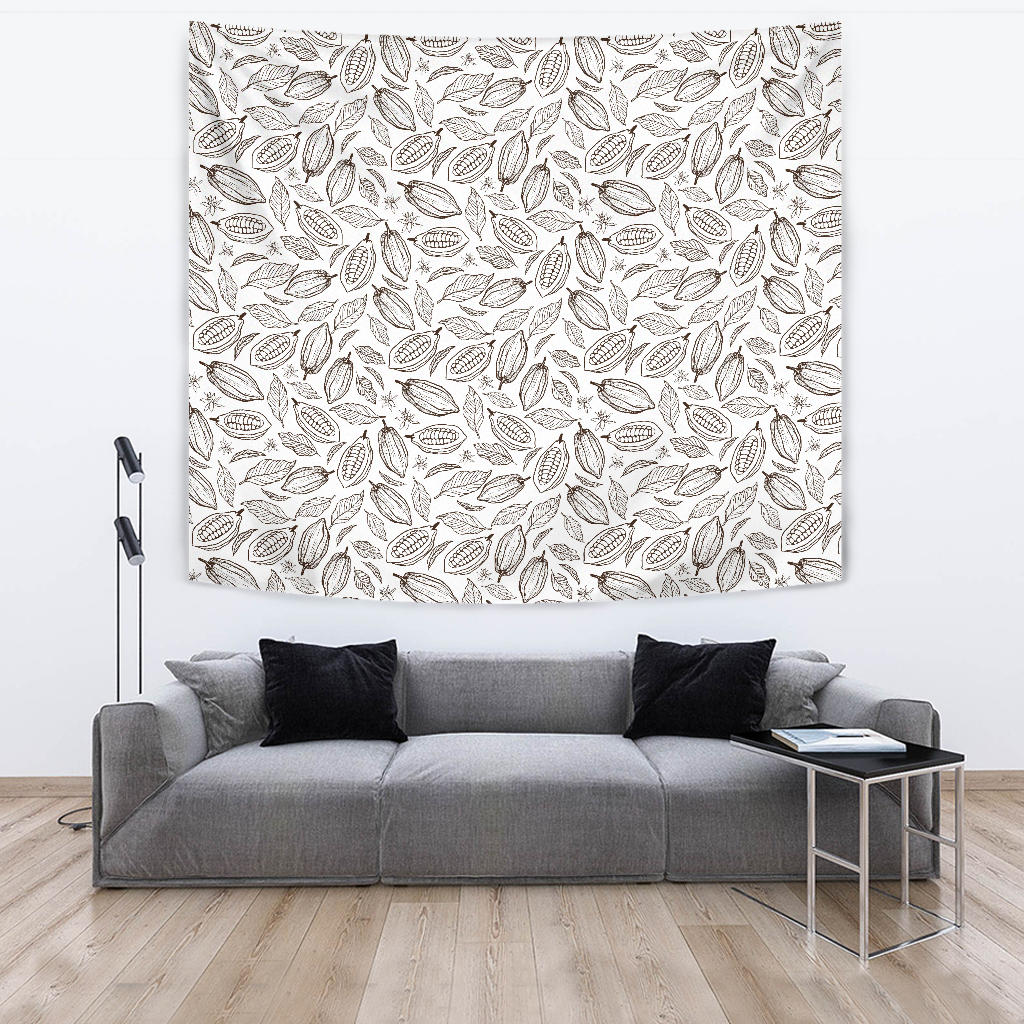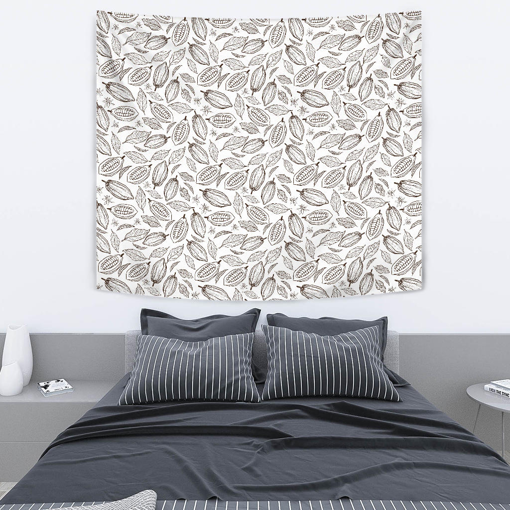 Cocoa Beans Leaves Pattern Wall Tapestry