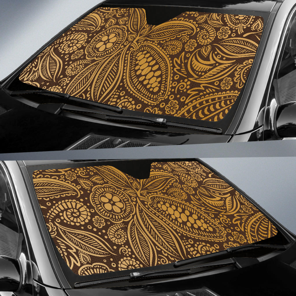 Cocoa Beans Tribal Polynesian Pattern Background Car Sun Shade