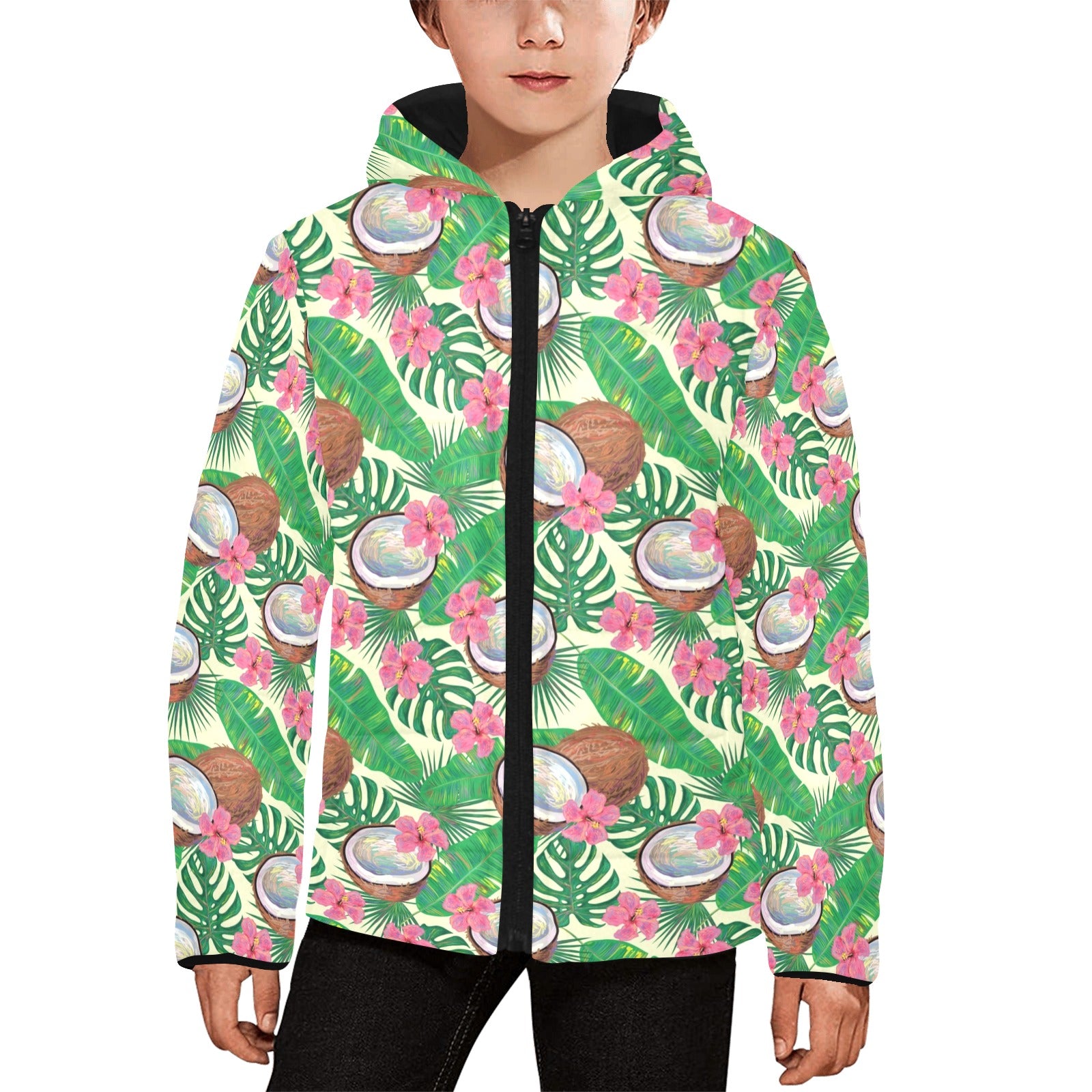 Coconut Pattern Print Design 01 Kids' Boys' Girls' Padded Hooded Jacket