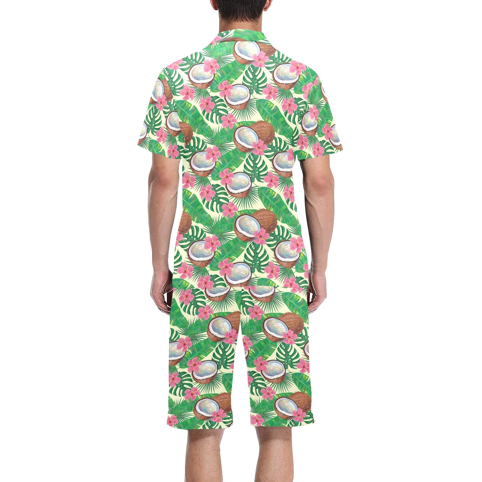 Coconut Pattern Print Design 01 Men's V-Neck Short Pajama Set