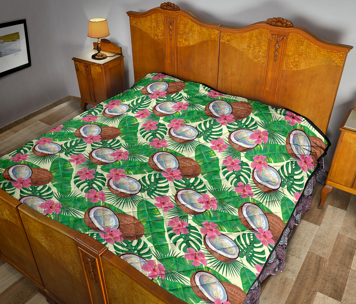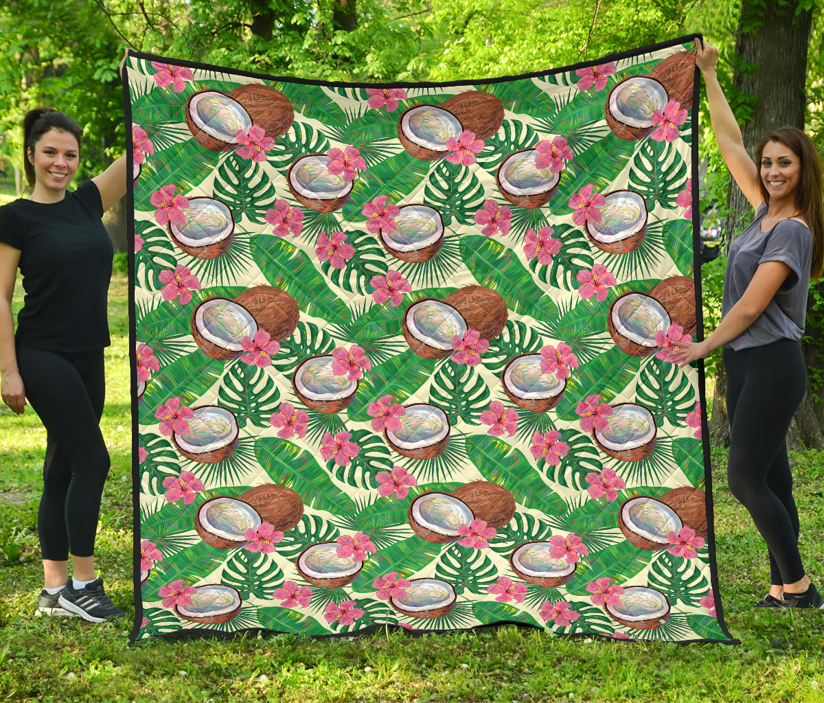 Coconut Pattern Print Design 01 Premium Quilt is a uniqued design and limited item. It made to order, hand printed, and sewn with love in our factory.