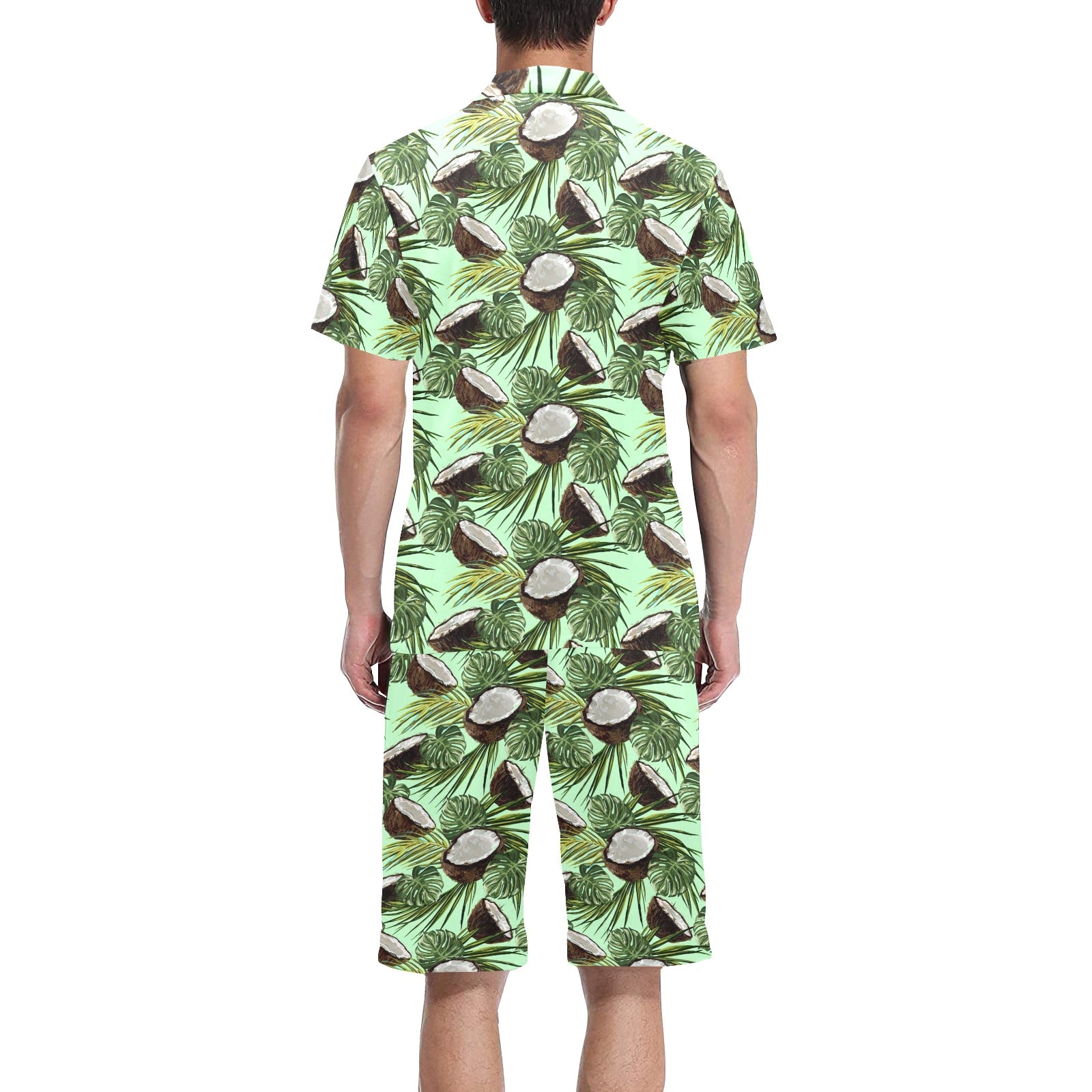 Coconut Pattern Print Design 02 Men's V-Neck Short Pajama Set