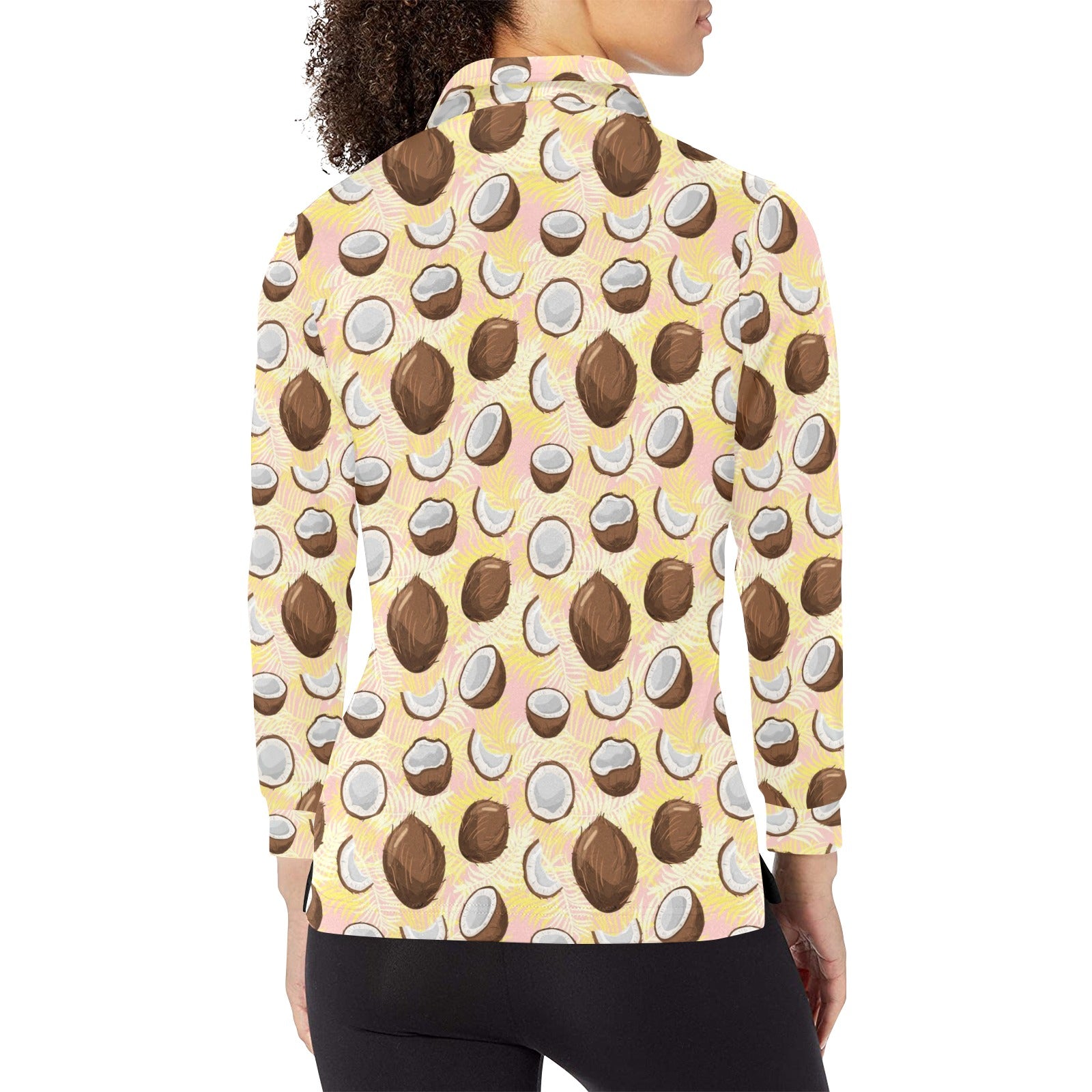 Coconut Pattern Print Design 05 Women's Long Sleeve Polo Shirt