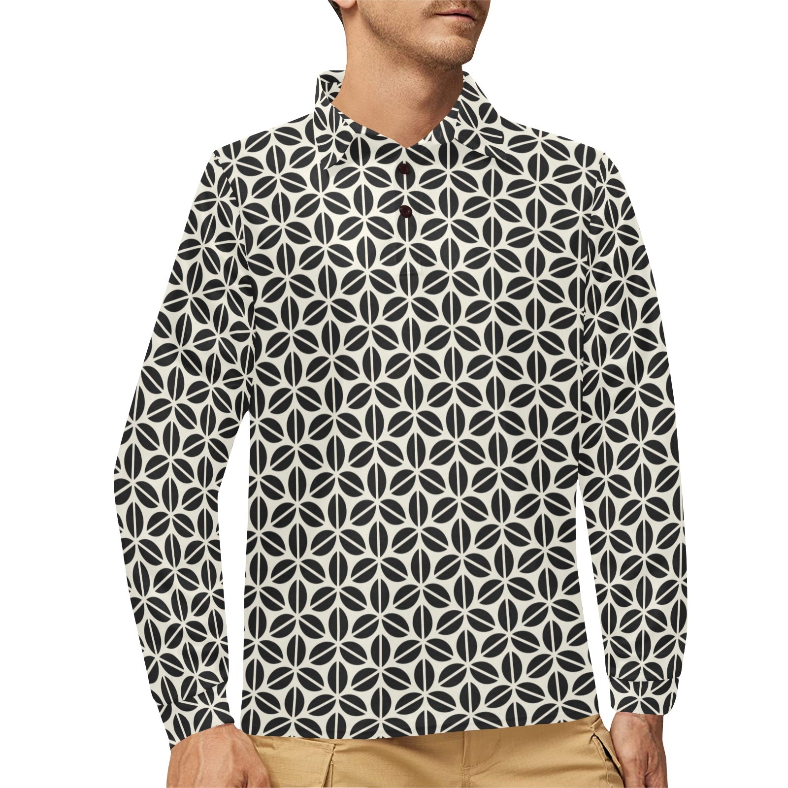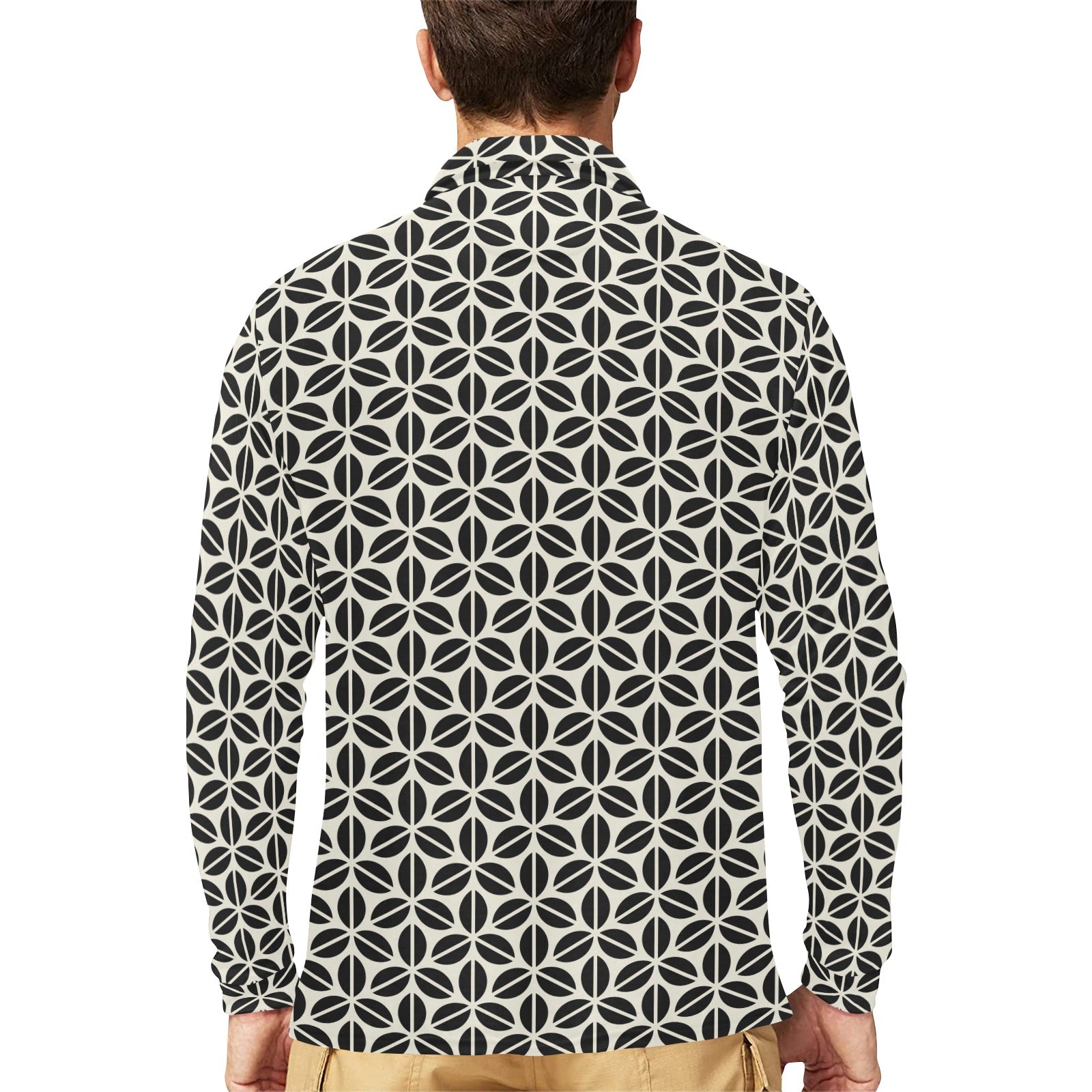 Coffee bean abstract modern pattern Men's Long Sleeve Polo Shirt