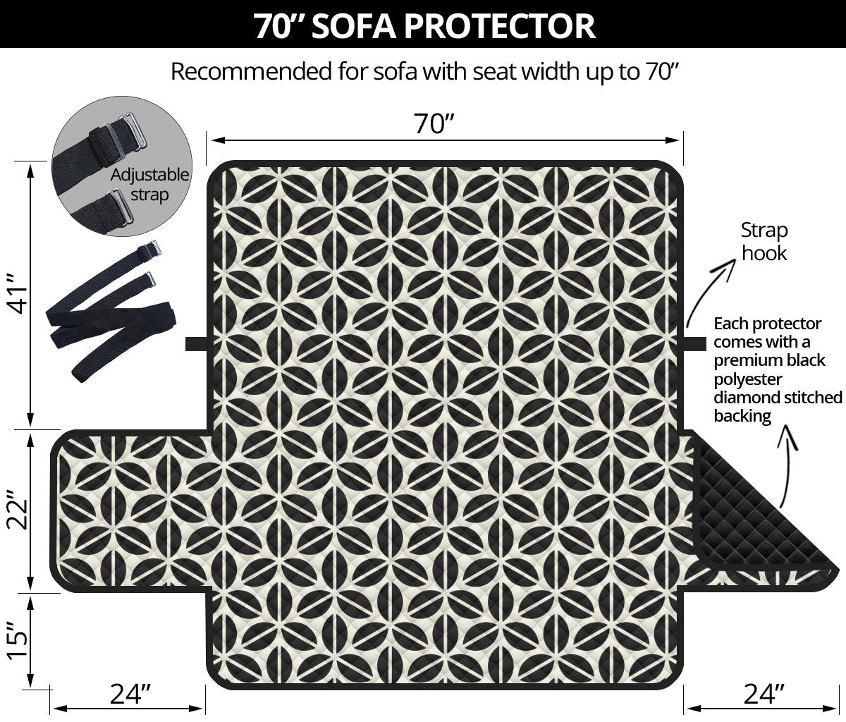 - Install in seconds with the included elastic strap designed with adjustable buckles for the perfect custom fit on your furniture.