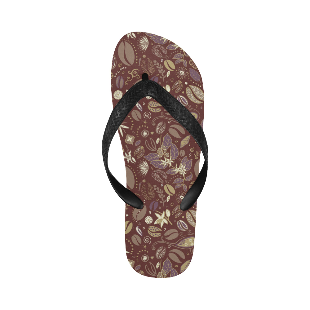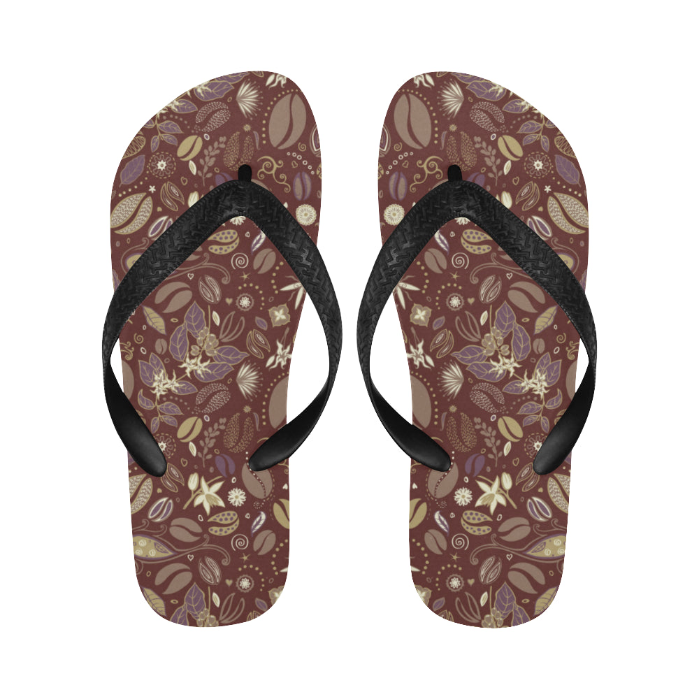 Coffee bean flower pattern Unisex Flip Flops is a uniqued design and limited item. It made to order, hand printed, and sewn with love in our factory.