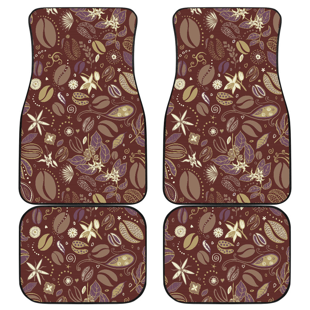 Coffee Bean Flower Pattern Front And Back Car Mats